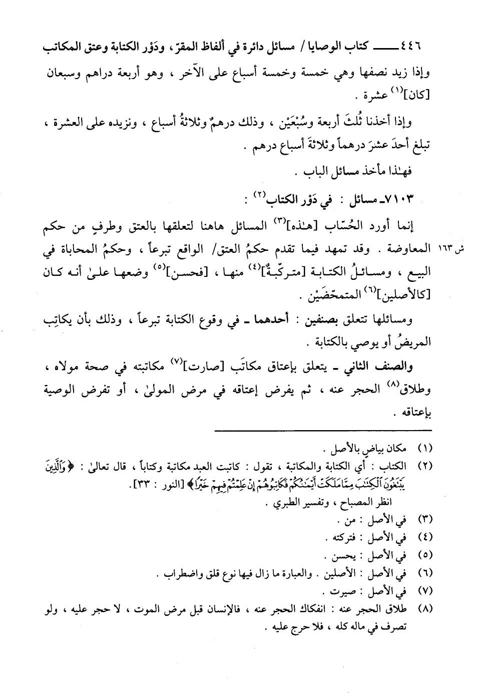 والصنف الثاني - يتعلق بإعتاق مكاتَب [صارت] (7) مكاتبته في صحة مولاه، وطلاق (8) الحجر عنه، ثم يفرض إعتاقه في مرض المولى، أو تفرض الوصية بإعتاقه.