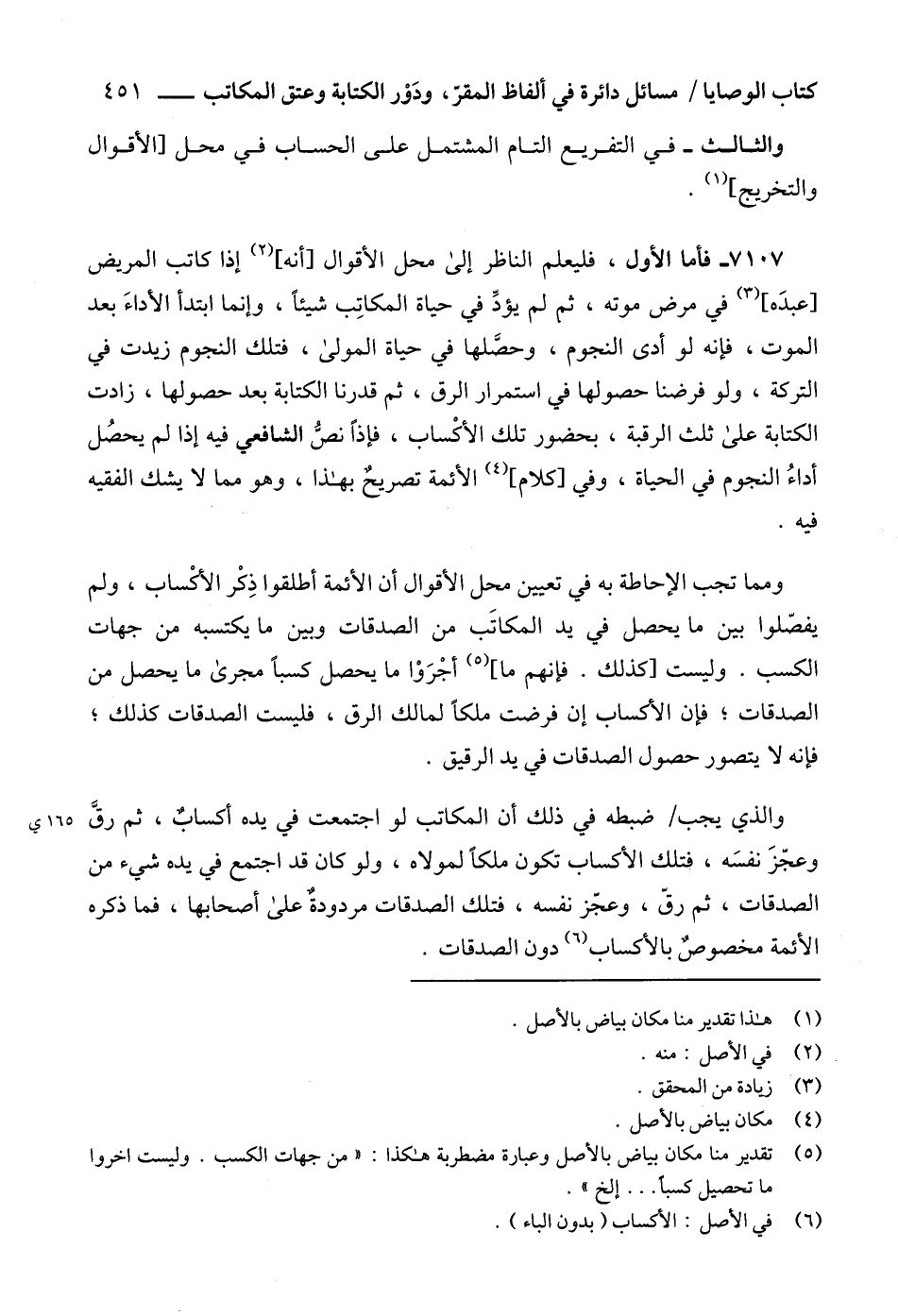 (5) تقدير منا مكان بياض بالأصل وعبارة مضطربة هكذا: "من جهات الكسب. وليست اخروا