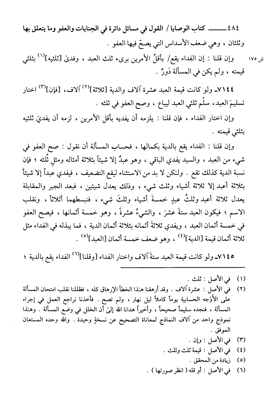 7144 - ولو كانت قيمة العبد عشرة آلاف والدية [ثلاثة] (2) آلاف، [فإن] (3) اختار تسليمَ العبد، سلّم ثلثي العبد ليباع، وصح العفو في ثلثه.