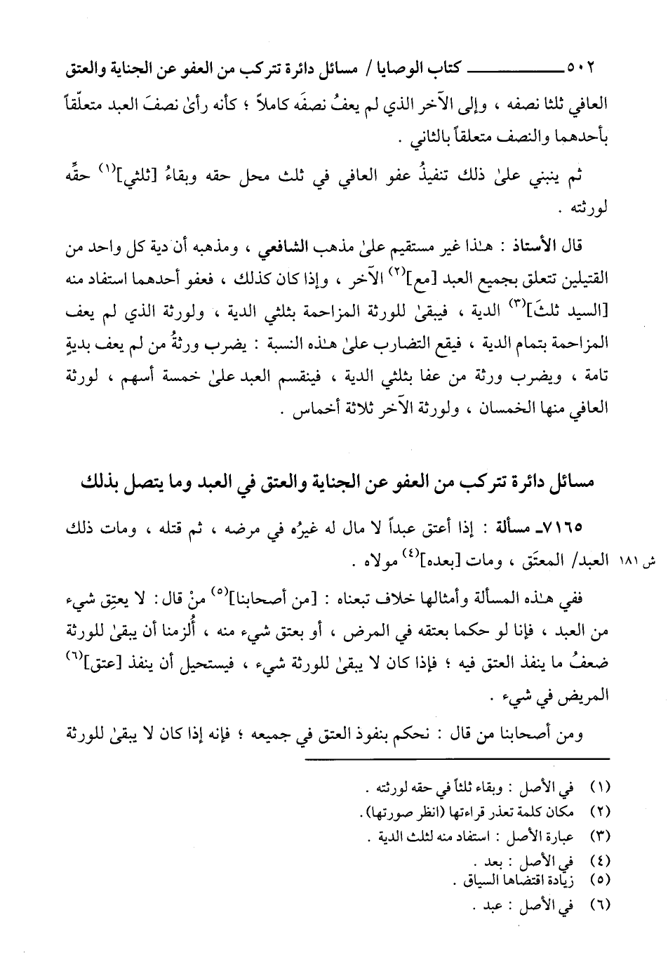 مسائل دائرة تتركب من العفو عن الجناية والعتق في العبد وما يتصل بذلك