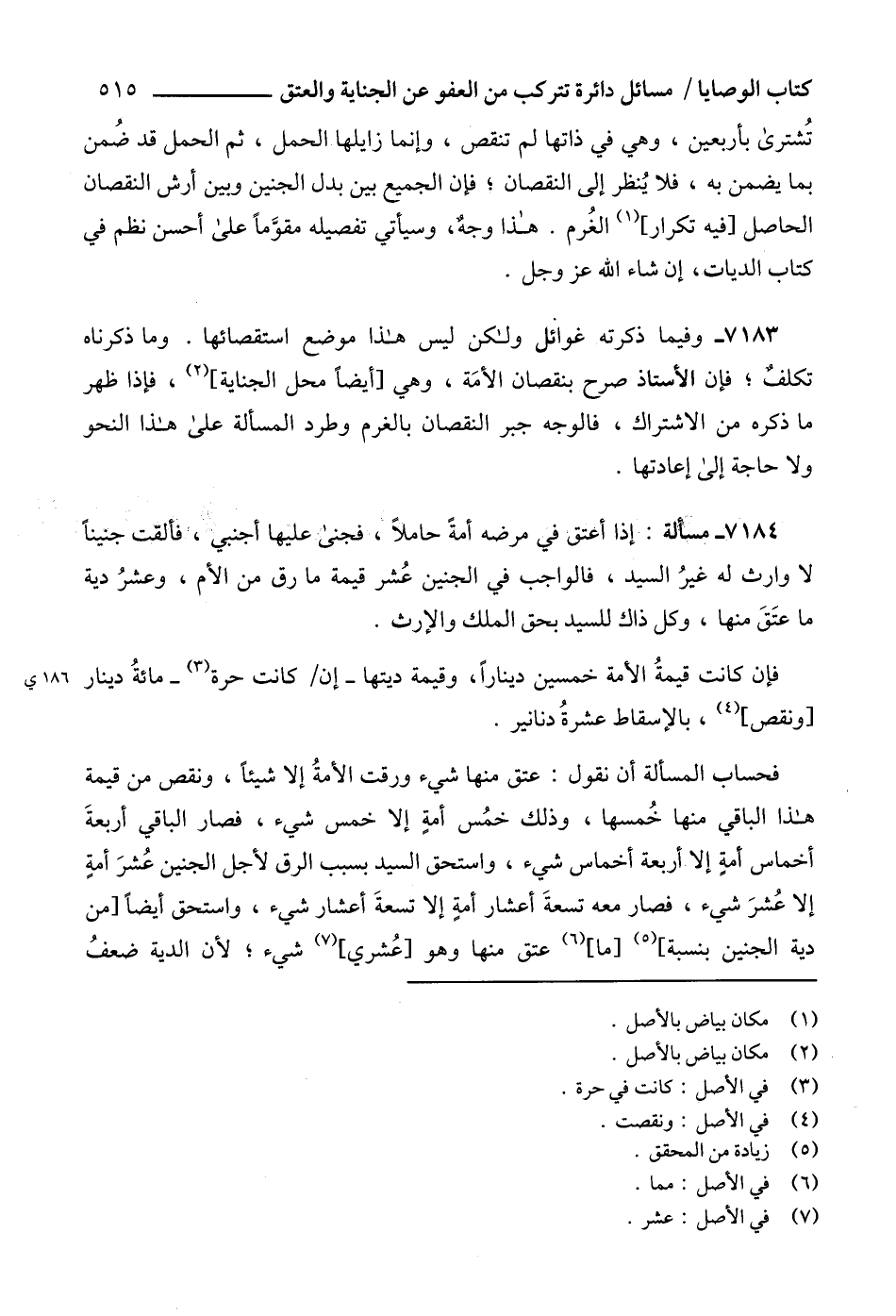 7183 - وفيما ذكرته غوائل ولكن ليس هذا موضع استقصائها. وما ذكرناه تكلفٌ؛ فإن الأستاذ صرح بنقصان الأمَة، وهي [أيضاً محل الجناية] (2)، فإذا ظهر ما ذكره من الاشتراك، فالوجه جبر النقصان بالغرم وطرد المسألة على هذا النحو ولا حاجة إلى إعادتها.