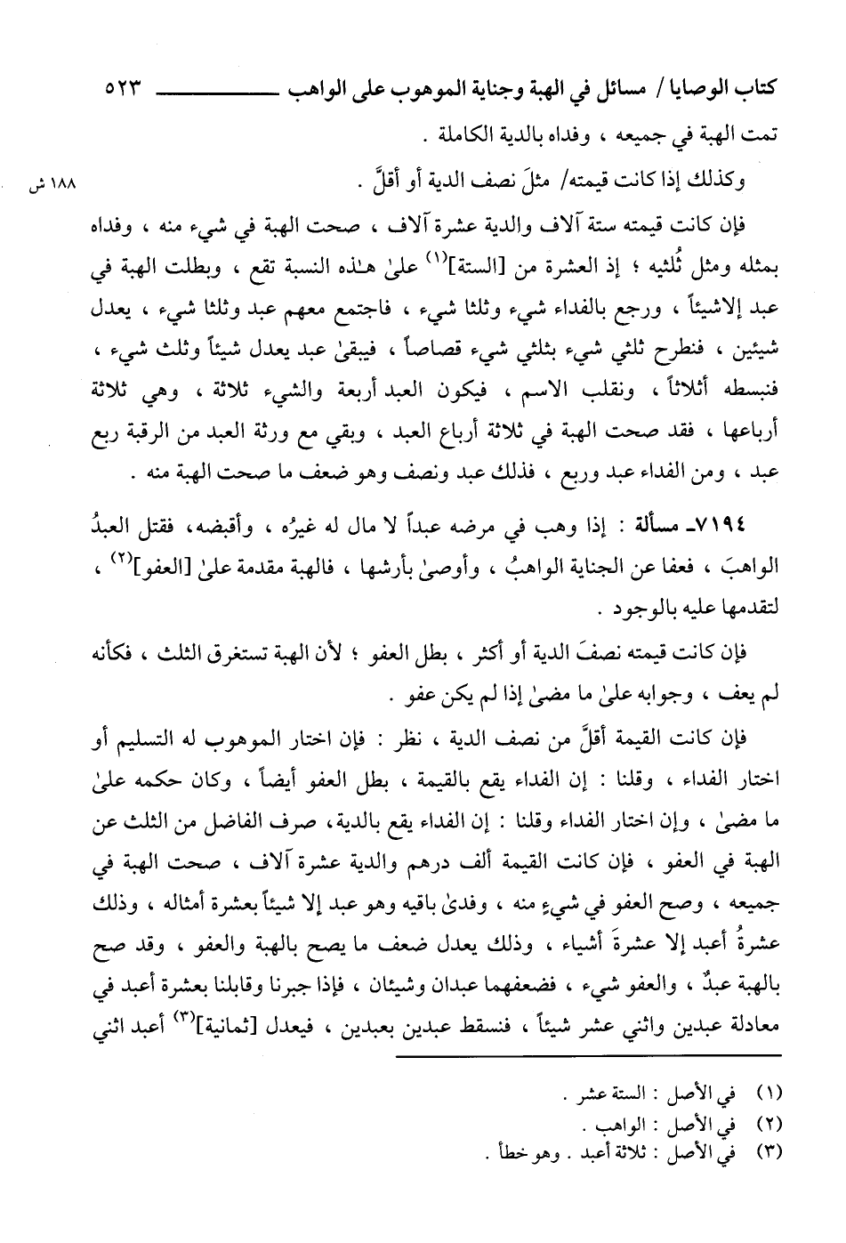 7194 - مسألة: إذا وهب في مرضه عبداً لا مال له غيرُه، وأقبضه، فقتل العبدُ الواهبَ، فعفا عن الجناية الواهبُ، وأوصى بأرشها، فالهبة مقدمة على [العفو] (2)، لتقدمها عليه بالوجود.