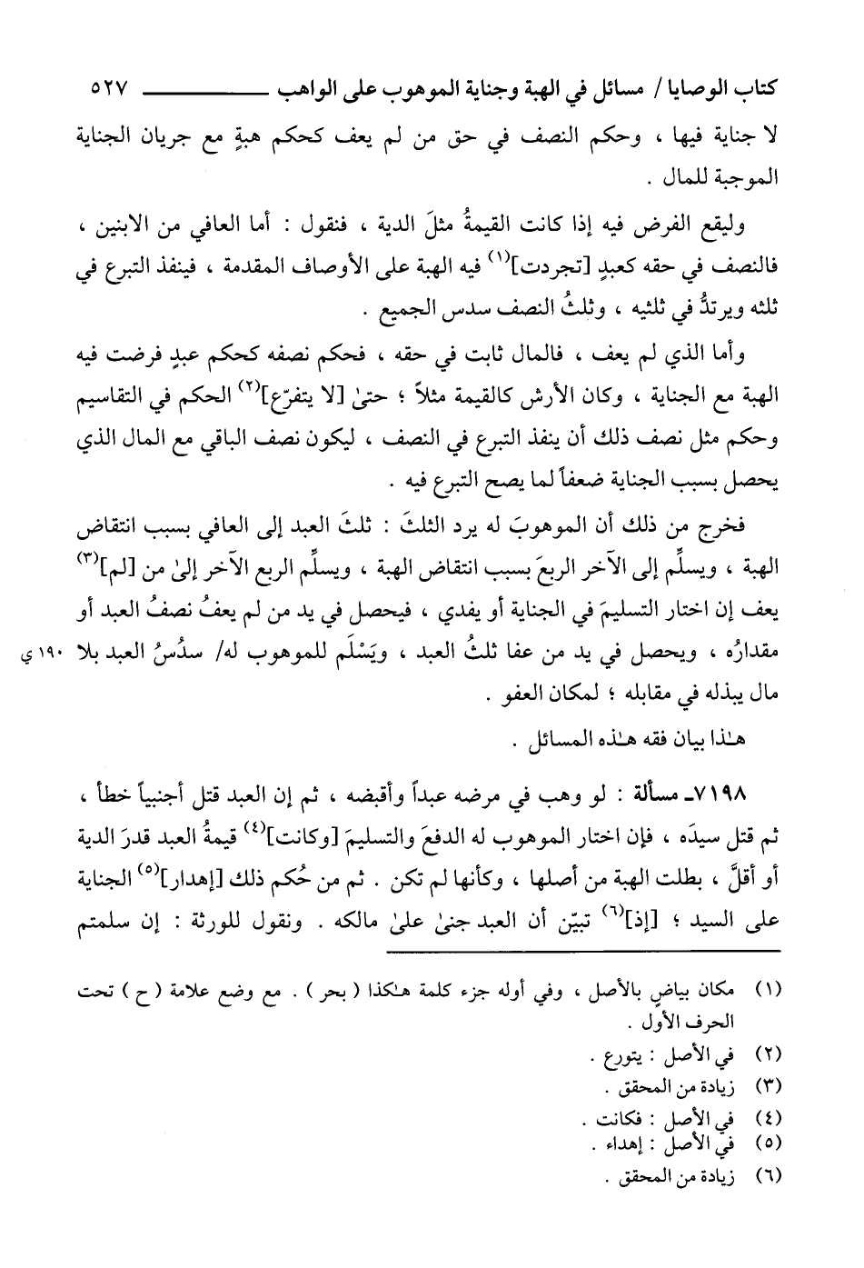 فخرج من ذلك أن الموهوبَ له يرد الثلثَ: ثلثَ العبد إلى العافي بسبب انتقاض الهبة، ويسلِّم إلى الآخر الربعَ بسبب انتقاض الهبة، ويسلِّم الربع الآخر إلى من [لم] (3) يعف إن اختار التسليمَ في الجناية أو يفدي، فيحصل في يد من لم يعفُ نصفُ العبد أو مقدارُه، ويحصل في يد من عفا ثلثُ العبد، ويَسْلَم للموهوب له سدُسُ العبد بلا مال يبذله في مقابله؛ لمكان العفو.