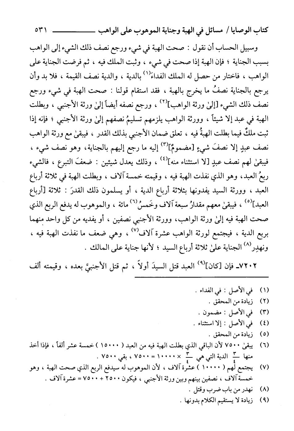 (7) يجتمع لهم (10000) عشرة آلاف، لأن الموهوب له سيدفع الربع الذي صحت الهبة، وهو خمسة آلاف، نصفين بينهم وبين ورثة الأجنبي، فيكون 2500 + 7500 = عشرة آلاف.