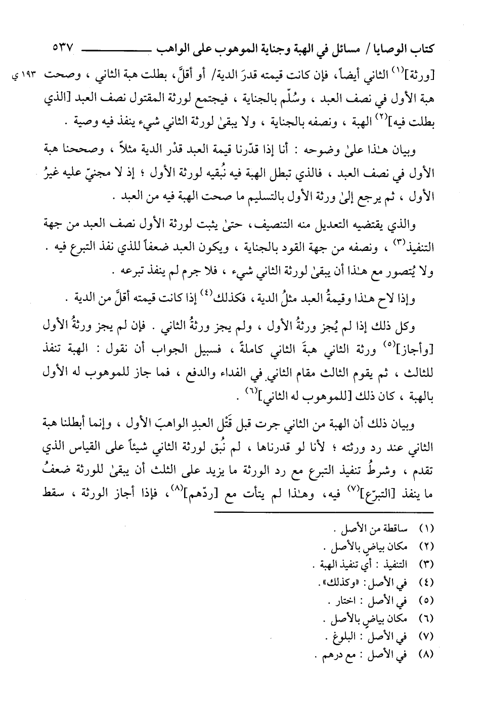 والذي يقتضيه التعديل منه التنصيف، حتى يثبت لورثة الأول نصف العبد من جهة التنفيذ (3)، ونصفه من جهة القود بالجناية، ويكون العبد ضعفاً للذي نفذ التبرع فيه.