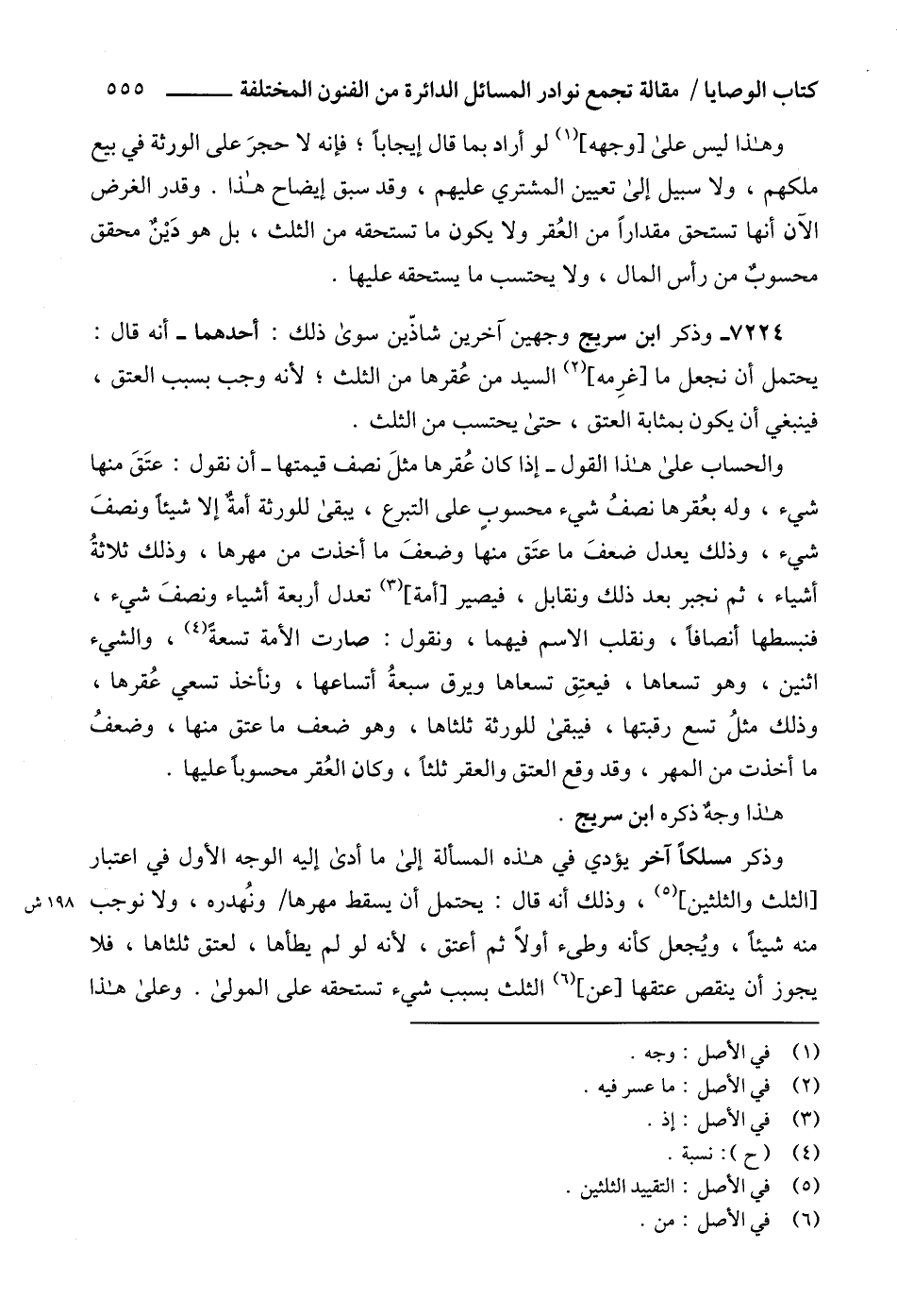 7224 - وذكر ابن سريج وجهين آخرين شاذّين سوى ذلك: أحدهما - أنه قال: يحتمل أن نجعل ما [غرِمه] (2) السيد من عُقرها من الثلث؛ لأنه وجب بسبب العتق، فينبغي أن يكون بمثابة العتق، حتى يحتسب من الثلث.