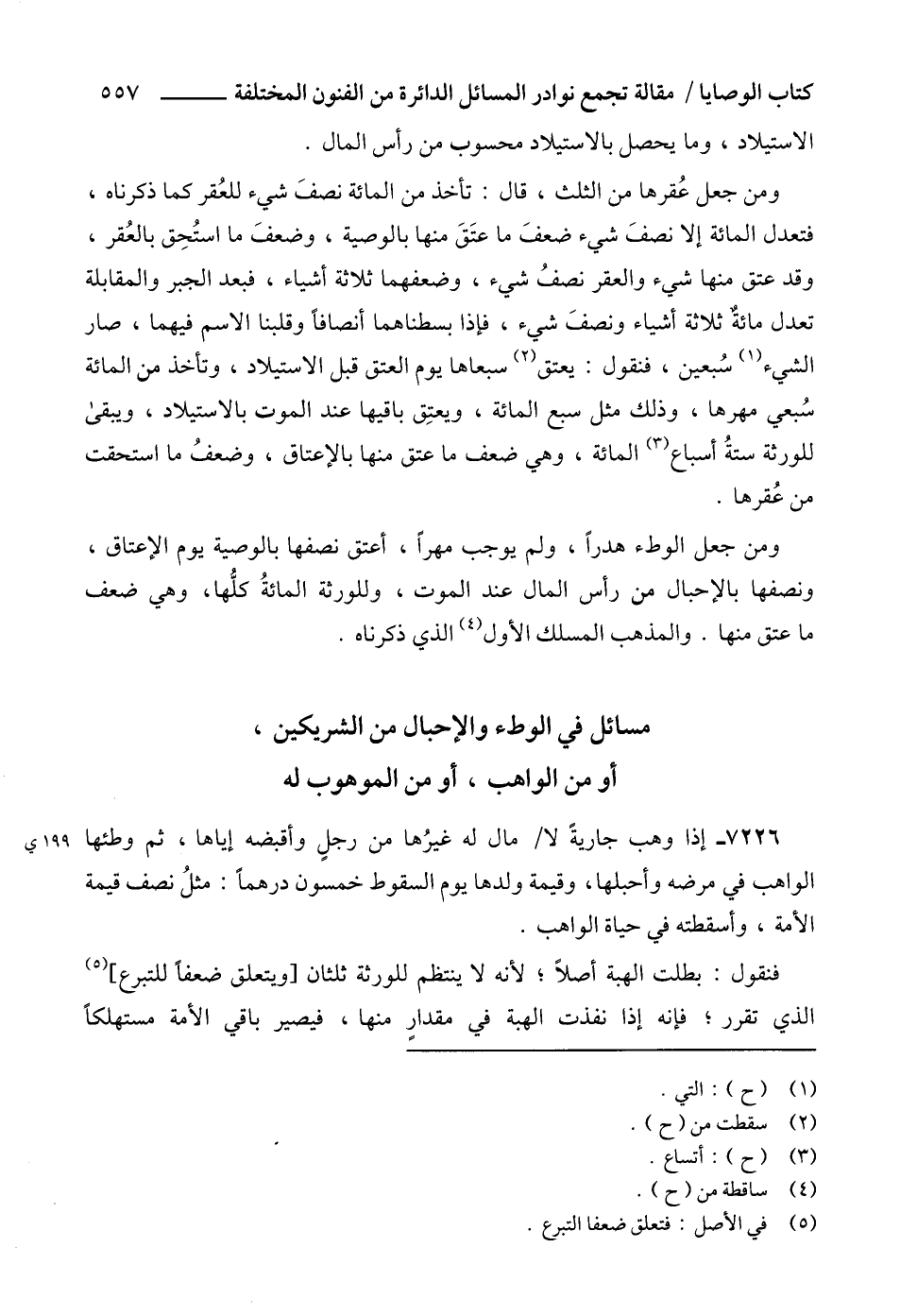 الاستيلاد، وما يحصل بالاستيلاد محسوب من رأس المال.