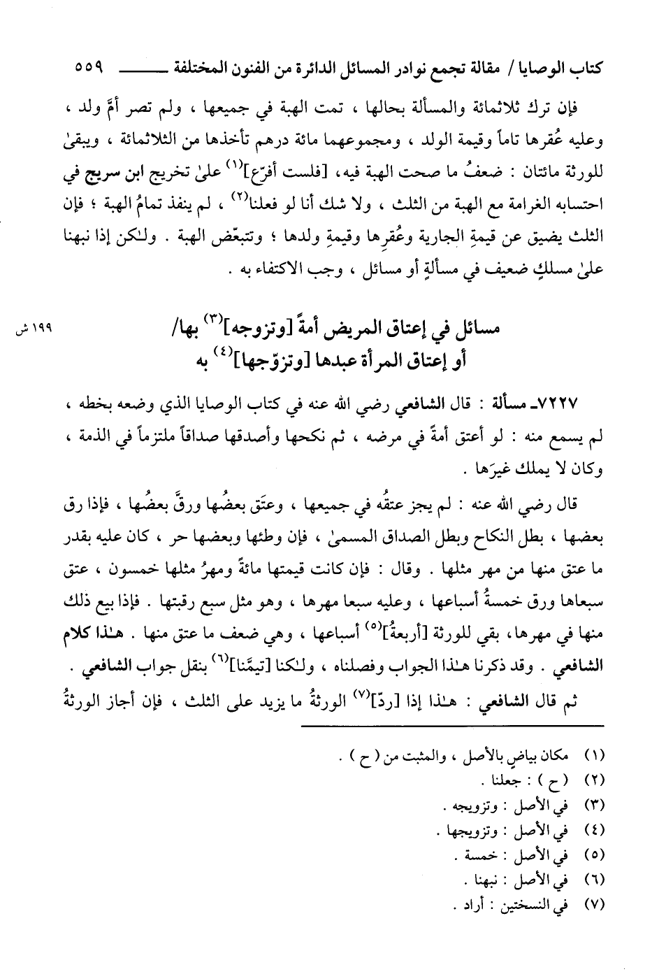 مسائل في إعتاق المريض أمةً [وتزوجه] (3) بها أو إعتاق المرأة عبدها [وتزوّجها] (4) به