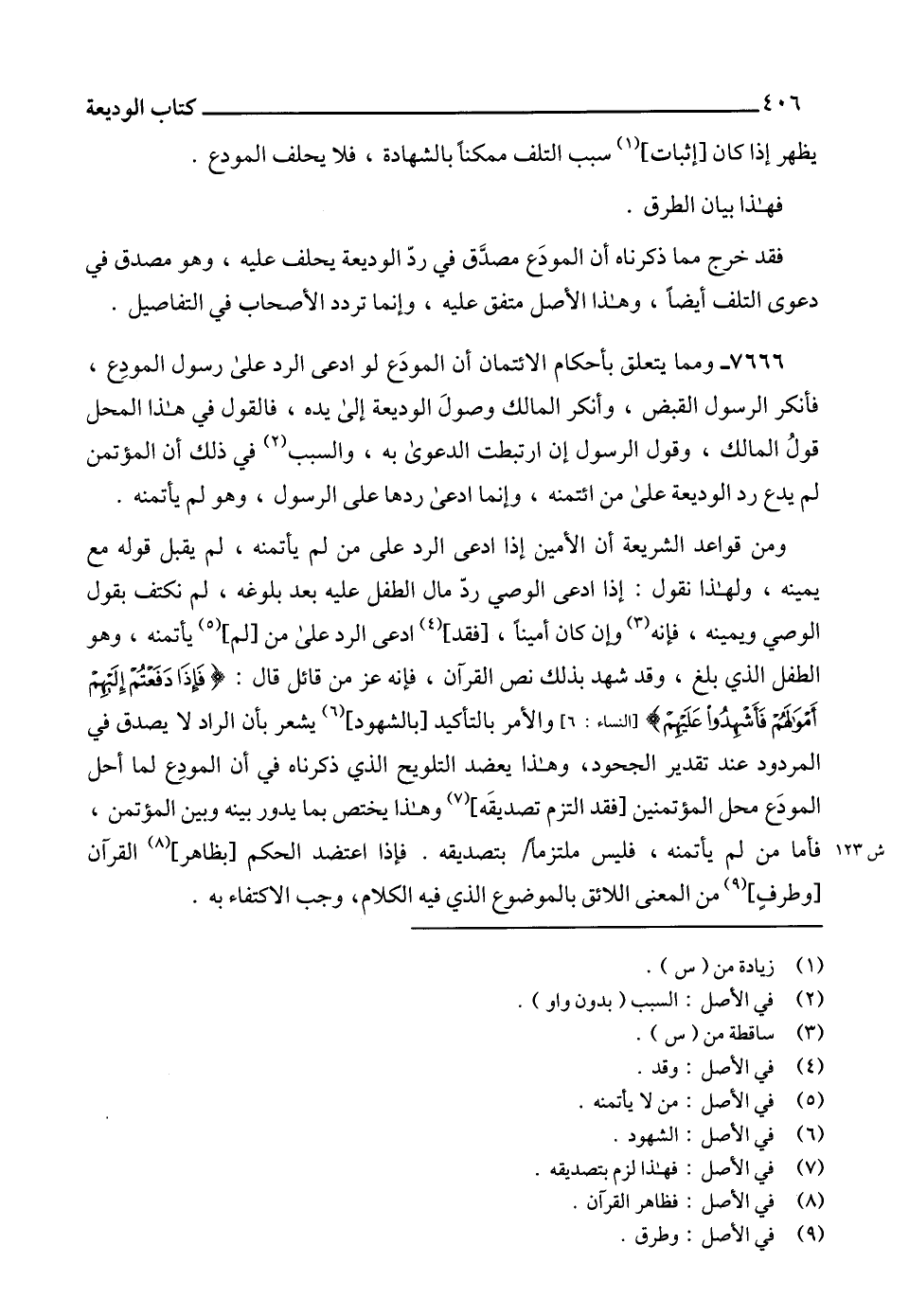 7666 - ومما يتعلق بأحكام الائتمان أن المودَع لو ادعى الرد على رسول المودِع، فأنكر الرسول القبض، وأنكر المالك وصولَ الوديعة إلى يده، فالقول في هذا المحل قولُ المالك، وقول الرسول إن ارتبطت الدعوى به، والسبب (2) في ذلك أن المؤتمن لم يدع رد الوديعة على من ائتمنه، وإنما ادعى ردها على الرسول، وهو لم يأتمنه.
