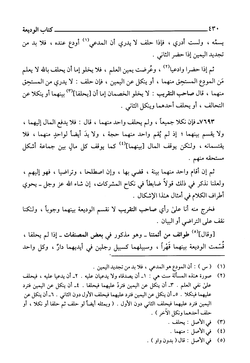 (2) صورة هذه المسألة ست هي: 1 - أن يصدفاه ولا يدعيان عليه. 2 - أن يدعيا عليه، فيحلف على نفي العلم. 3 - أن ينكل عن اليمين فتردّ عليهما فيحلفا. 4 - أن ينكل عن اليمين فترد عليهما فينكلا. 5 - أن ينكل عن اليمين فترد عليهما فيحلف الأول دون الثاني. 6 - أن ينكل عن اليمين فترد عليهما فيحلف الثاني دون الأول. (وبمثله أيضاً لو حلف ثم حلفا أو نكلا، أو حلف أحدهما ونكل الآخر).