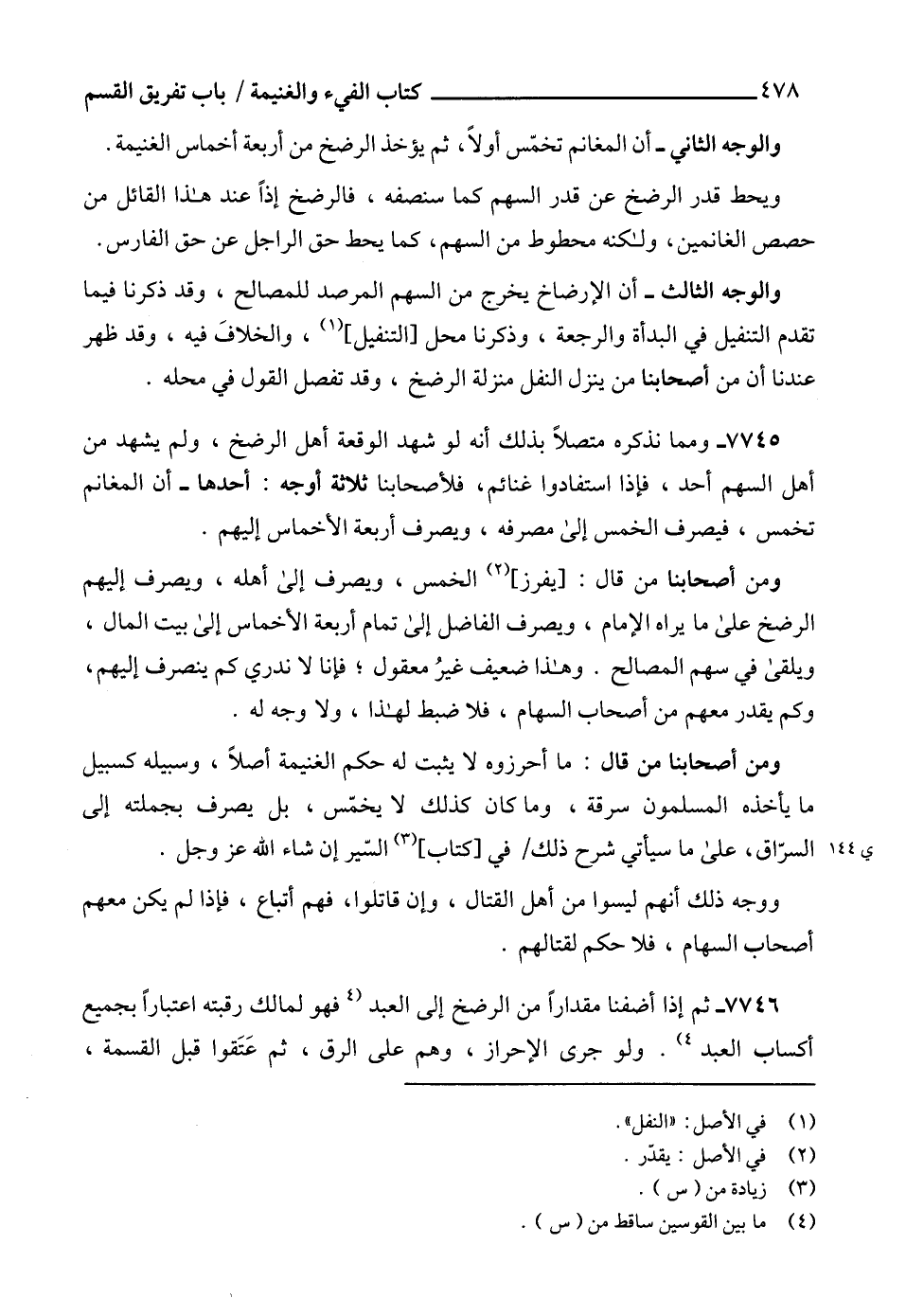 7746 - ثم إذا أضفنا مقداراً من الرضخ إلى العبد (4 فهو لمالك رقبته اعتباراً بجميع أكساب العبد 4). ولو جرى الإحراز، وهم على الرق، ثم عَتَقوا قبل القسمة،