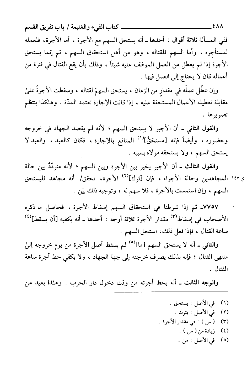 7757 - ثم إذا شرطنا في استحقاق السهم إسقاط الأجرة، فحاصل ما ذكره الأصحاب في إسقاط (3) مقدار الأجرة ثلاثة أوجه: أحدها - أنه يكفيه [أن يسقط] (4) ساعة القتال، فإذا فعل ذلك، استحق السهم.