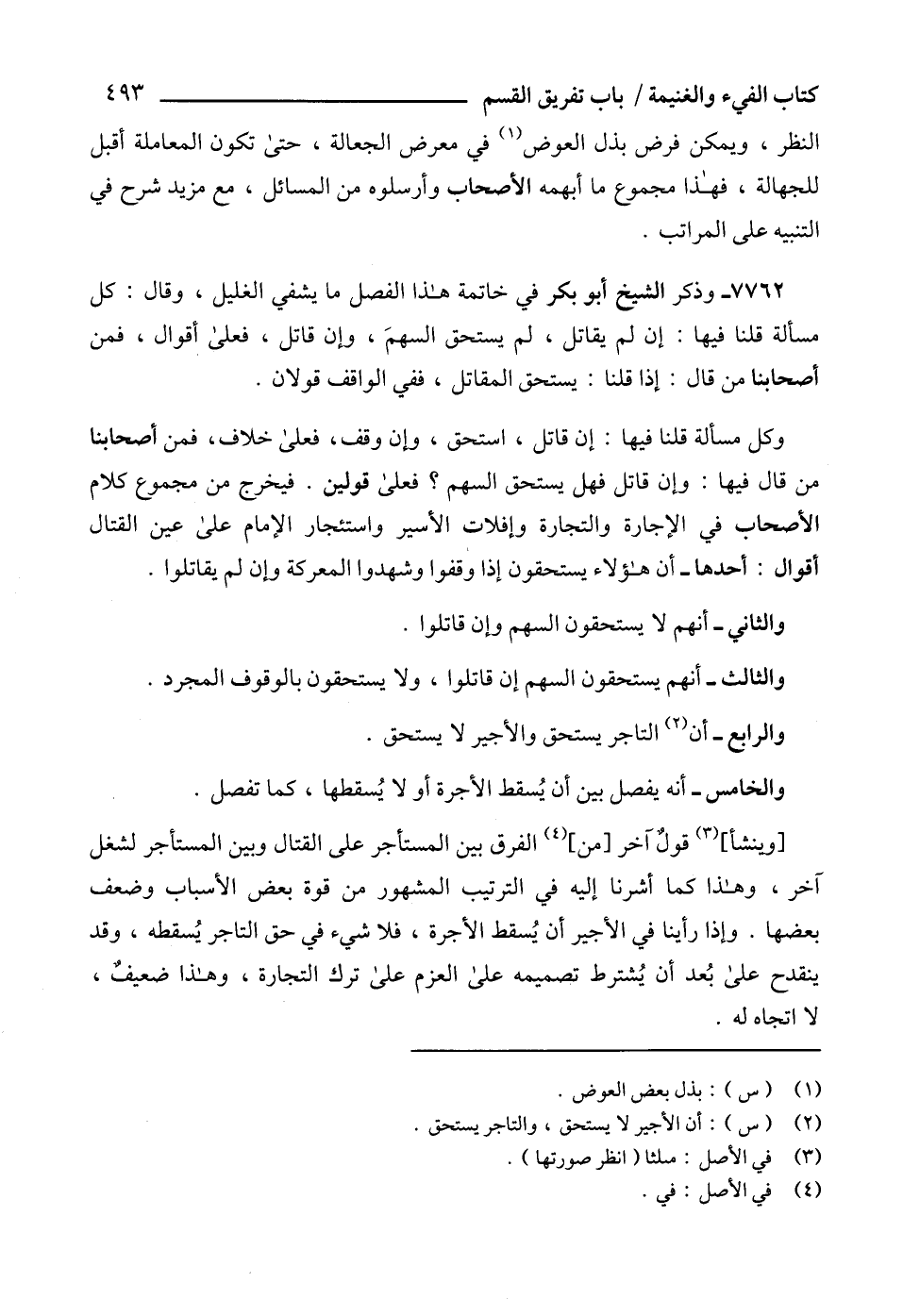 7762 - وذكر الشيخ أبو بكر في خاتمة هذا الفصل ما يشفي الغليل، وقال: كل مسألة قلنا فيها: إن لم يقاتل، لم يستحق السهمَ، وإن قاتل، فعلى أقوال، فمن أصحابنا من قال: إذا قلنا: يستحق المقاتل، ففي الواقف قولان.