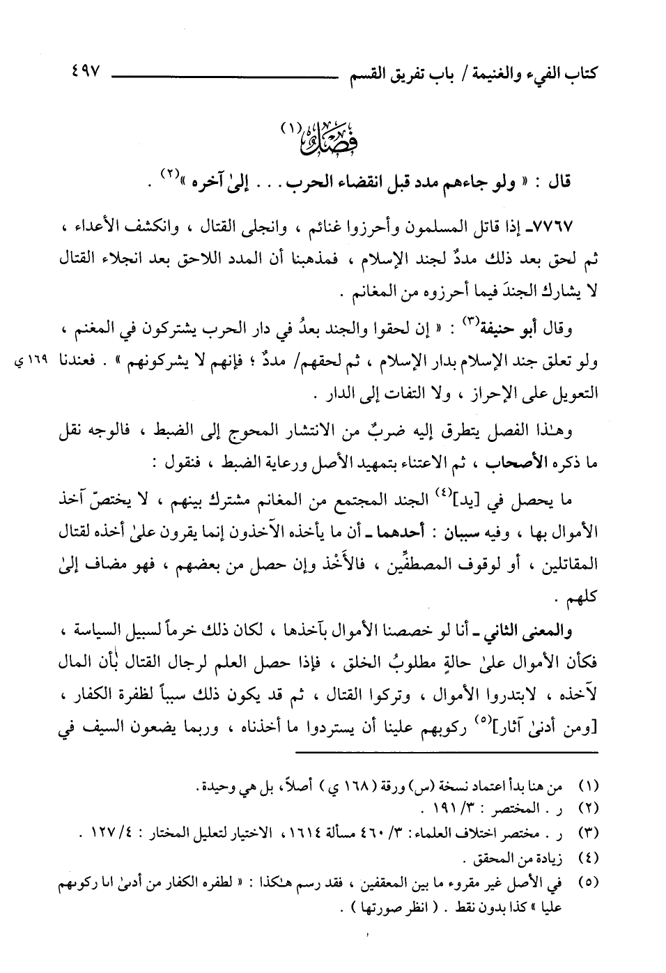 قال: "ولو جاءهم مدد قبل انقضاء الحرب ... إلى آخره" (2).