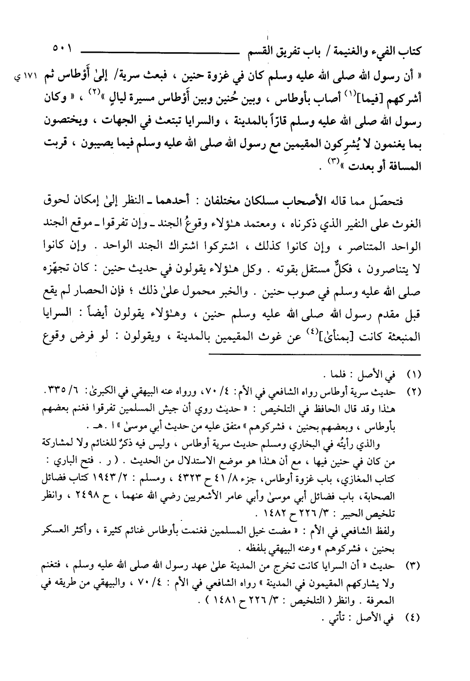 (2) حديث سرية أوطاس رواه الشافعي في الأم: 4/ 70، ورواه عنه البيهقي في الكبرى: 6/ 335.