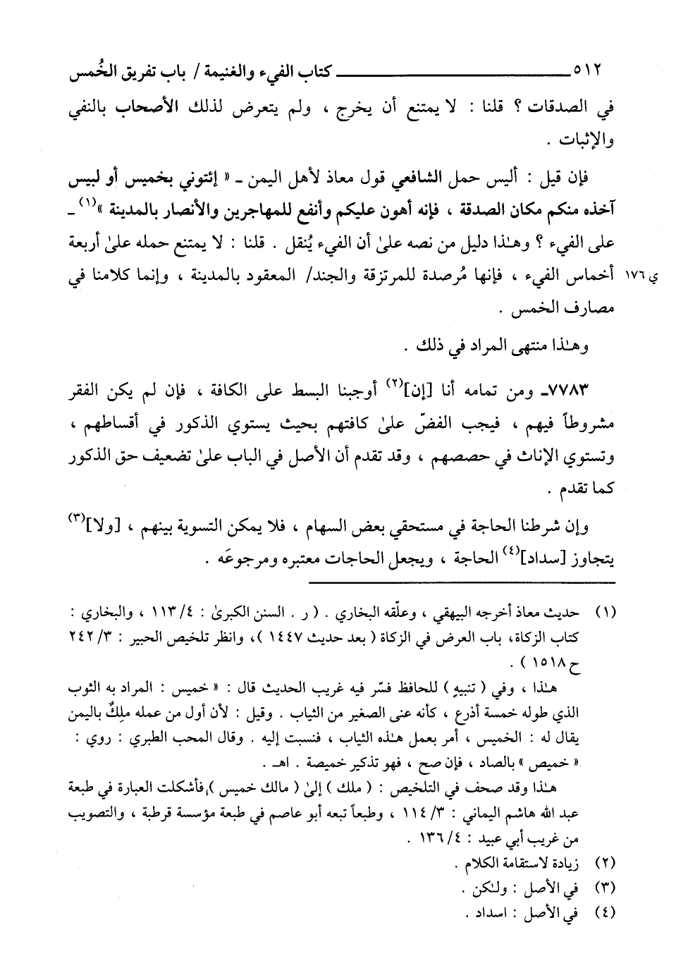 (1) حديث معاذ أخرجه البيهقي، وعلّقه البخاري. (ر. السنن الكبرى: 4/ 113، والبخاري: كتاب الزكاة، باب العرض في الزكاة (بعد حديث 1447)، وانظر تلخيص الحبير: 3/ 242 ح 1518).