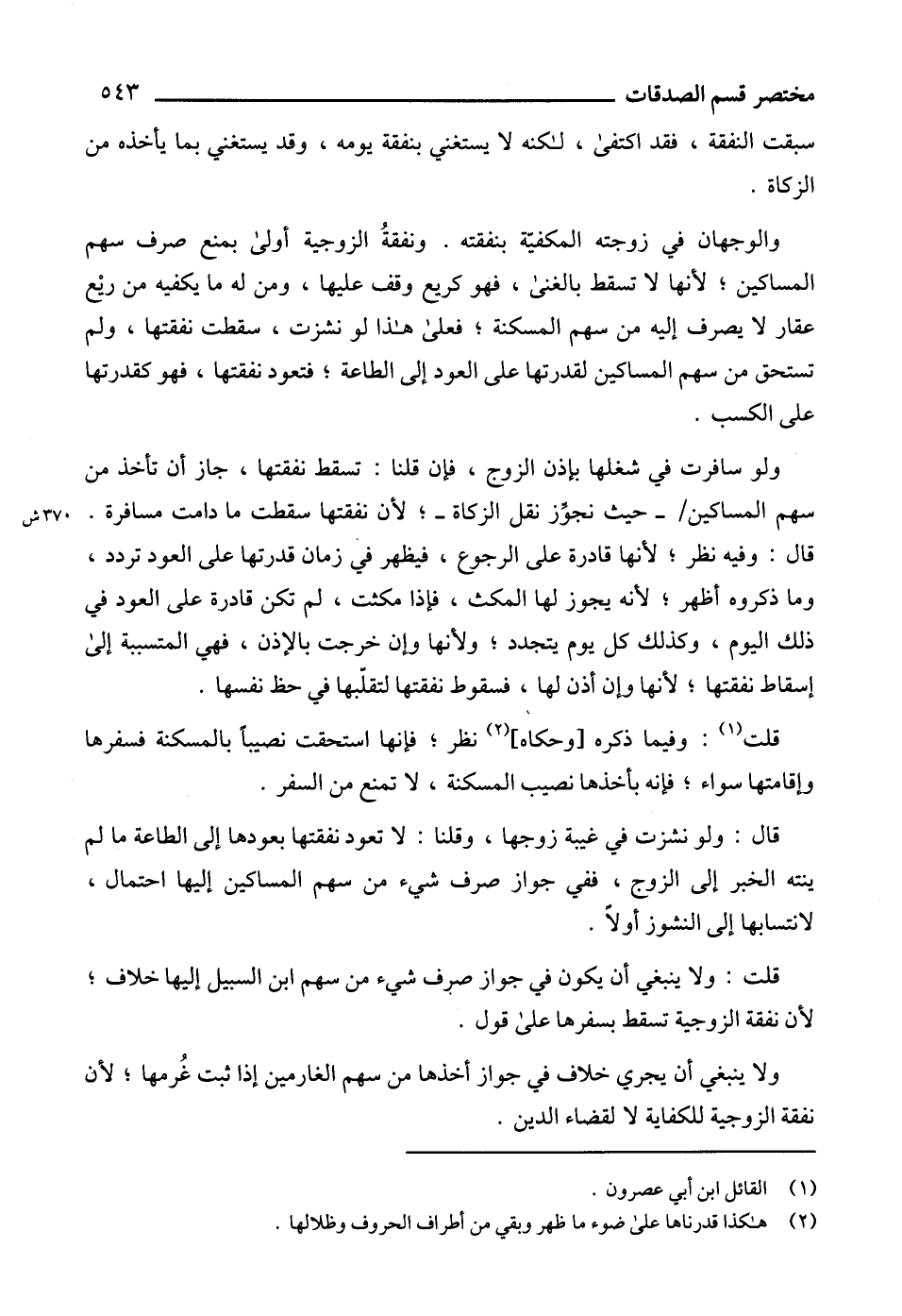 قلت (1): وفيما ذكره [وحكاه] (2) نظر؛ فإنها استحقت نصيباً بالمسكنة فسفرها وإقامتها سواء؛ فإنه بأخذها نصيب المسكنة، لا تمنع من السفر.