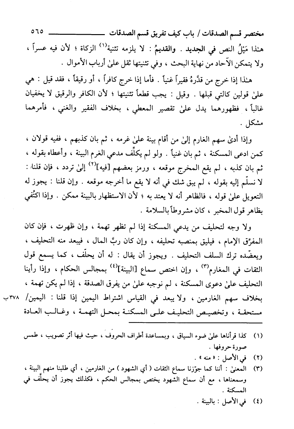 ولا وجه لتحليف من يدعي المسكنة إذا لم تظهر تهمة، وإن ظهرت، فإن كان المفرِّق الإمام، فيليق بمنصبه تحليفه، وإن كان ربَّ المال، فيبعد منه التحليف، ويعضّده ترك السلف التحليف. ويجوز أن يقال: له أن يحلّف، كما يسمع قول الثقات في المغارم (3)، وإن اختص سماع [البينة] (4) بمجالس الحكام، وإذا رأينا التحليف على دعوى المسكنة، لم نوجبه على من يفرق الصدقة، إذا لم يكن تهمة، بخلاف سهم الغارمين، ولا يبعد في القياس اشتراط اليمين إذا قلنا: اليمين مستحقة، وتخصيص التحليف على المسكنة بمحل التهمة، وغالب العادة
