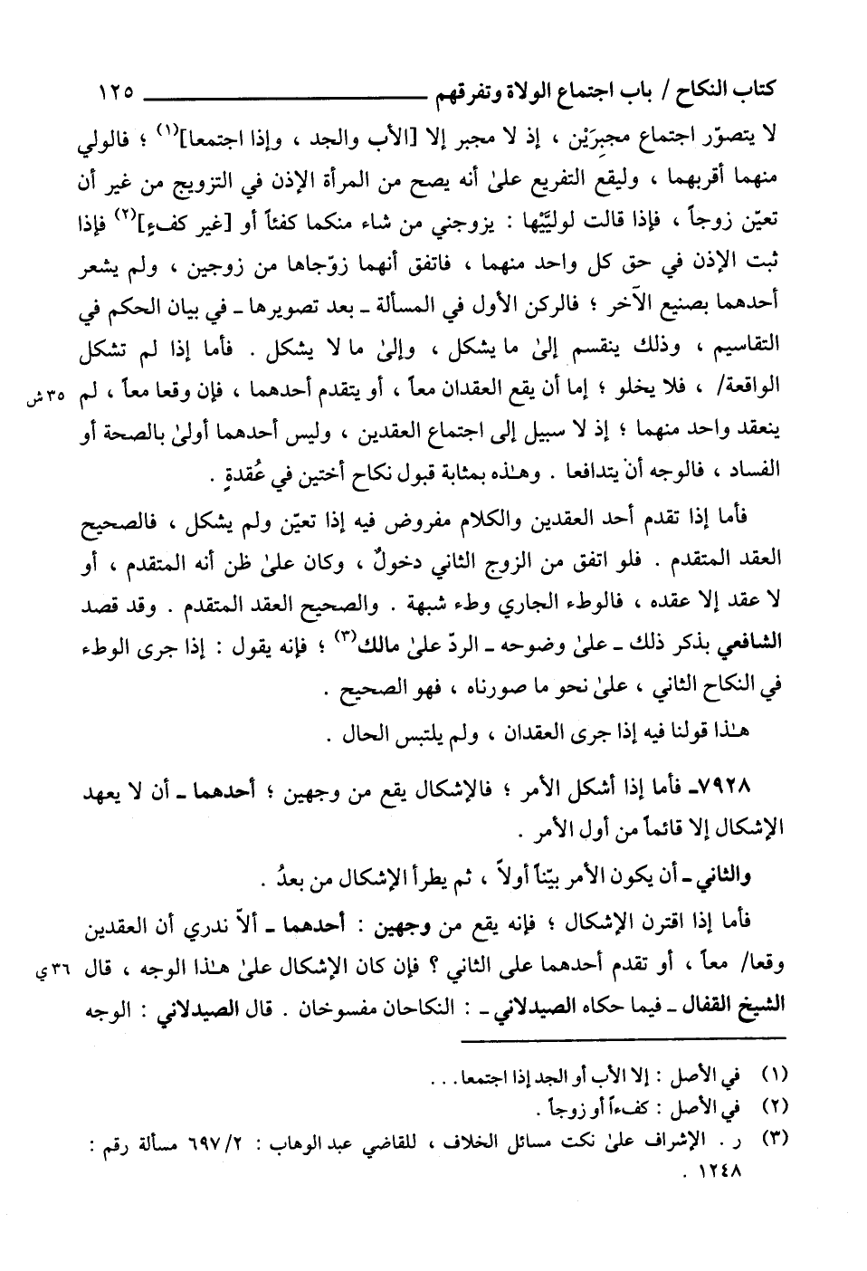 (3) ر. الأشراف على نكت مسائل الخلاف، للقاضي عبد الوهاب: 2/ 697 مسألة رقم: 1248.