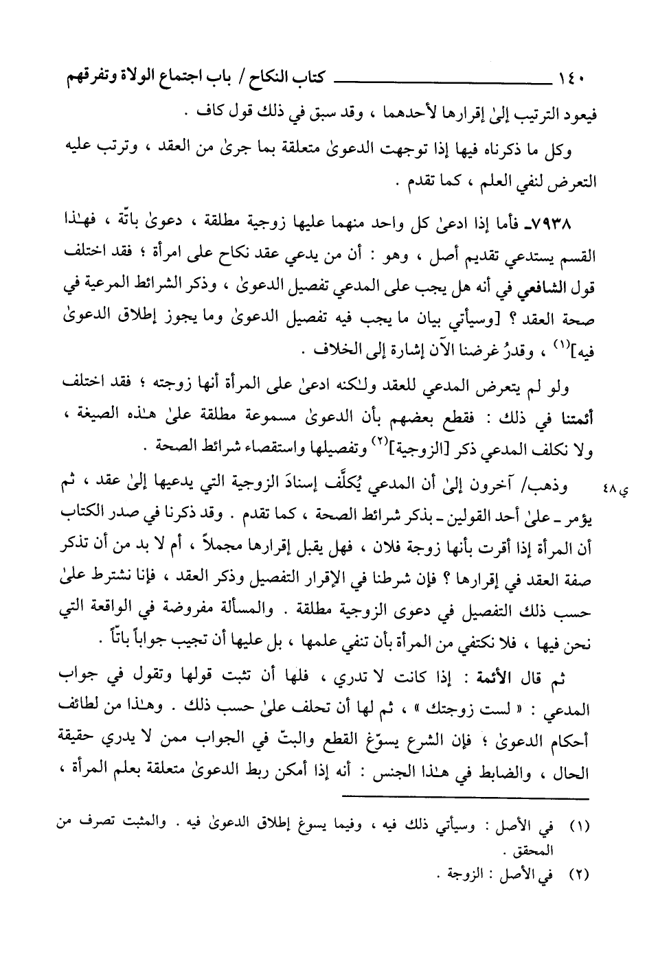 7938 - فأما إذا ادعى كل واحد منهما عليها زوجية مطلقة، دعوى باتّة، فهذا القسم يستدعي تقديم أصل، وهو: أن من يدعي عقد نكاح على امرأة؛ فقد اختلف قول الشافعي في أنه هل يجب على المدعي تفصيل الدعوى، وذكر الشرائط المرعية في صحة العقد؟ [وسيأتي بيان ما يجب فيه تفصيل الدعوى وما يجوز إطلاق الدعوى فيه] (1)، وقدرُ غرضنا الآن إشارة إلى الخلاف.