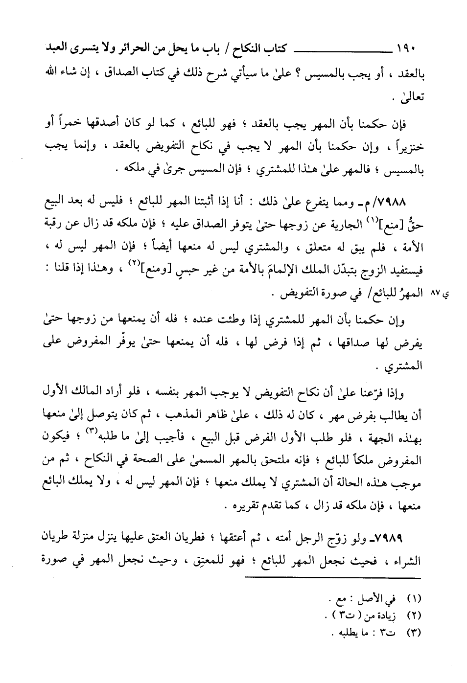 7989 - ولو زوّج الرجل أمته، ثم أعتقها؛ فطريان العتق عليها ينزل منزلة طريان الشراء، فحيث نجعل المهر للبائع؛ فهو للمعتِق، وحيث نجعل المهر في صورة