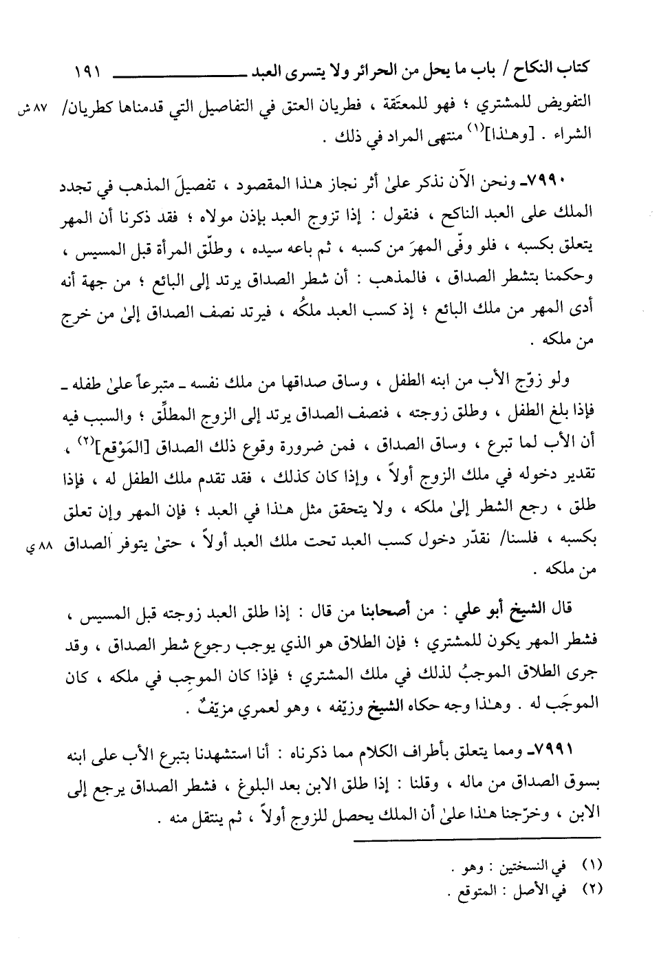 7991 - ومما يتعلق بأطراف الكلام مما ذكرناه: أنا استشهدنا بتبرع الأب على ابنه بسوق الصداق من ماله، وقلنا: إذا طلق الابن بعد البلوغ، فشطر الصداق يرجع إلى الابن، وخرّجنا هذا على أن الملك يحصل للزوج أولاً، ثم ينتقل منه.