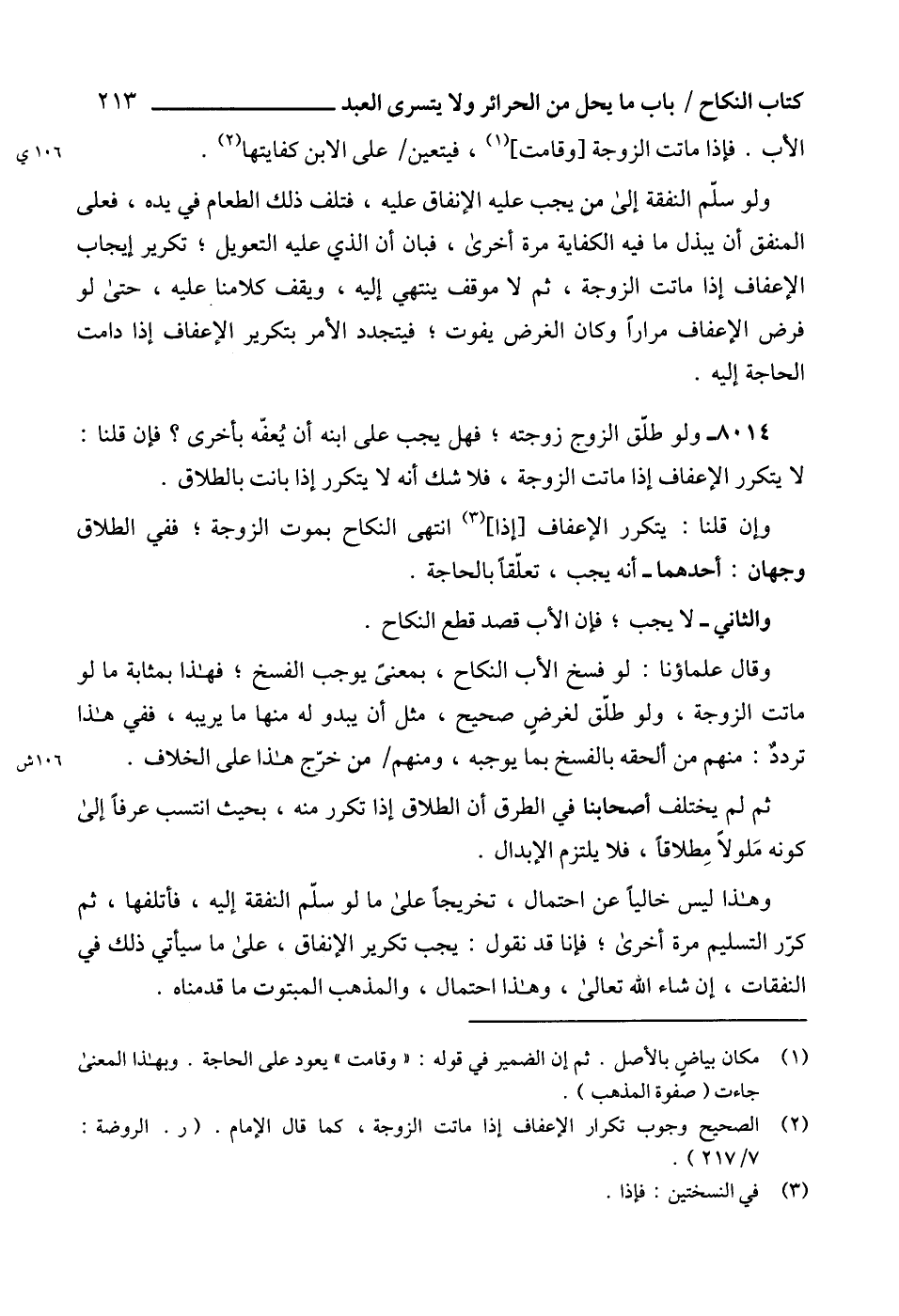 (2) الصحيح وجوب تكرار الإعفاف إذا ماتت الزوجة، كما قال الإمام. (ر. الروضة: 7/ 217).