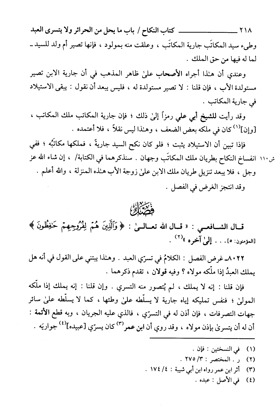 قال الشافعي: "قال الله تعالى: {وَالَّذِينَ هُمْ لِفُرُوجِهِمْ حَافِظُون} [المؤمنون: 5] ... إلى آخره" (2).