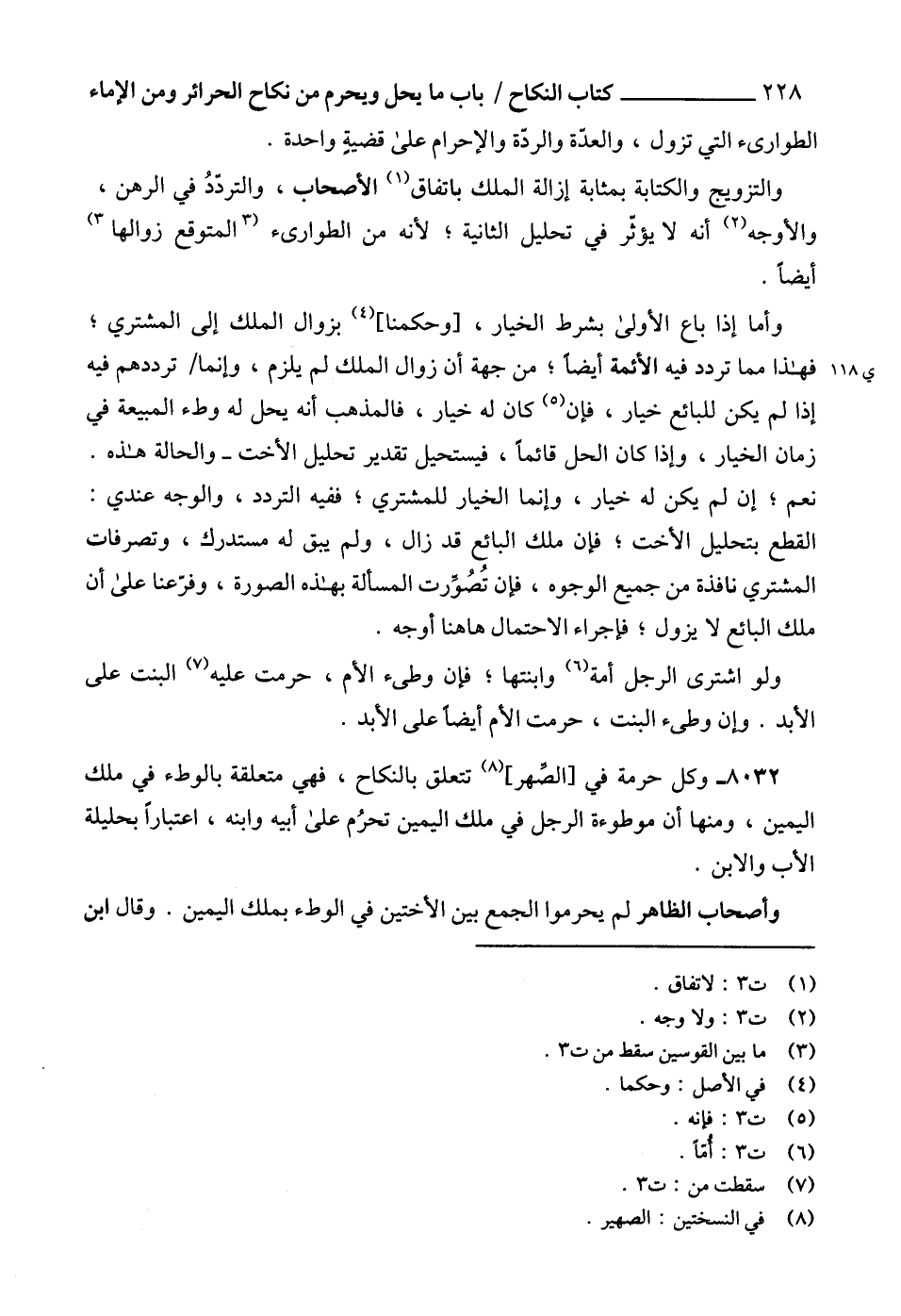 8032 - وكل حرمة في [الصهر] (8) تتعلق بالنكاح، فهي متعلقة بالوطء في ملك اليمين، ومنها أن موطوءة الرجل في ملك اليمين تحرُم على أبيه وابنه، اعتباراً بحليلة الأب والابن.