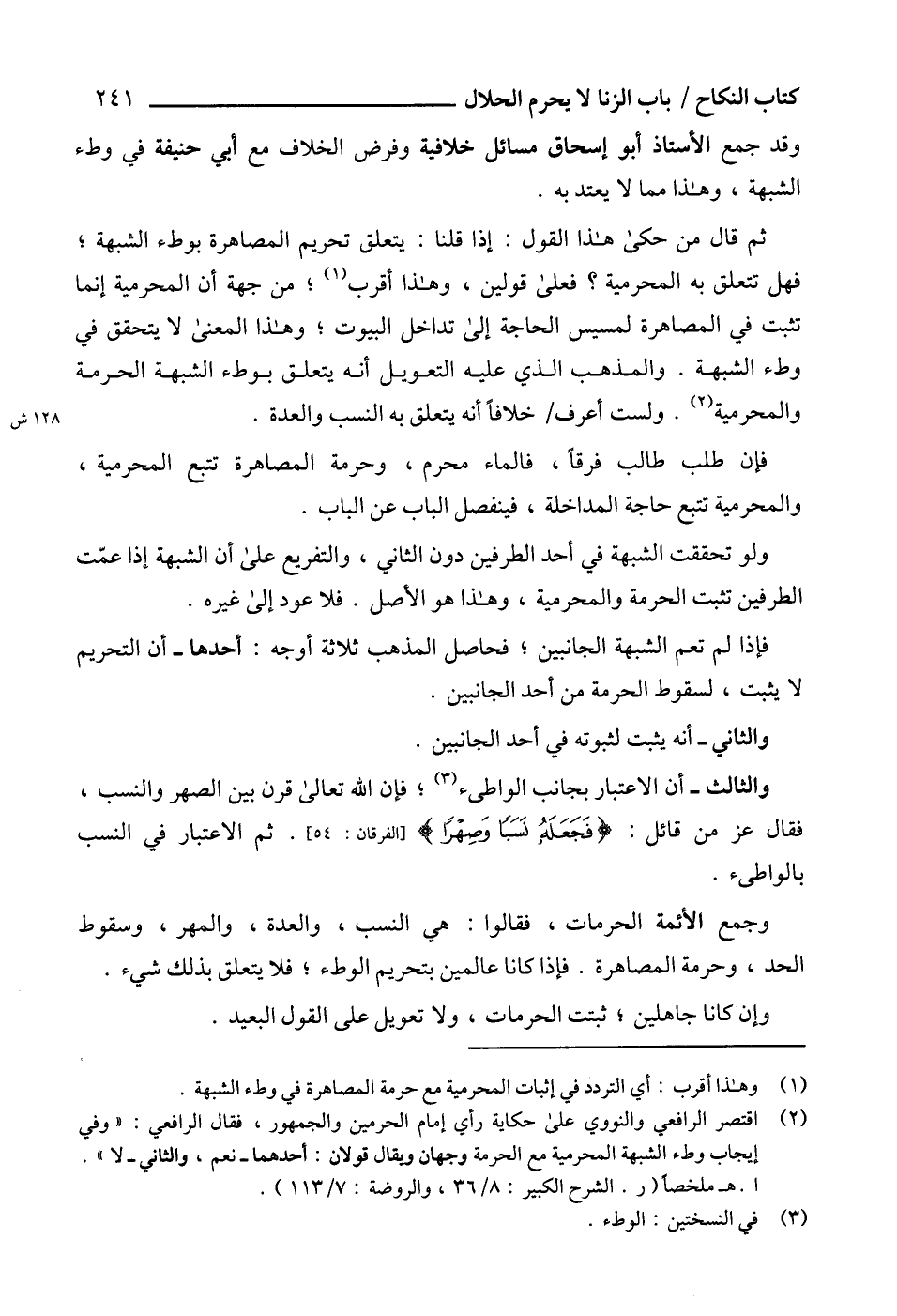 ا. هـ ملخصاً (ر. الشرح الكبير: 8/ 36، والروضة: 7/ 113).