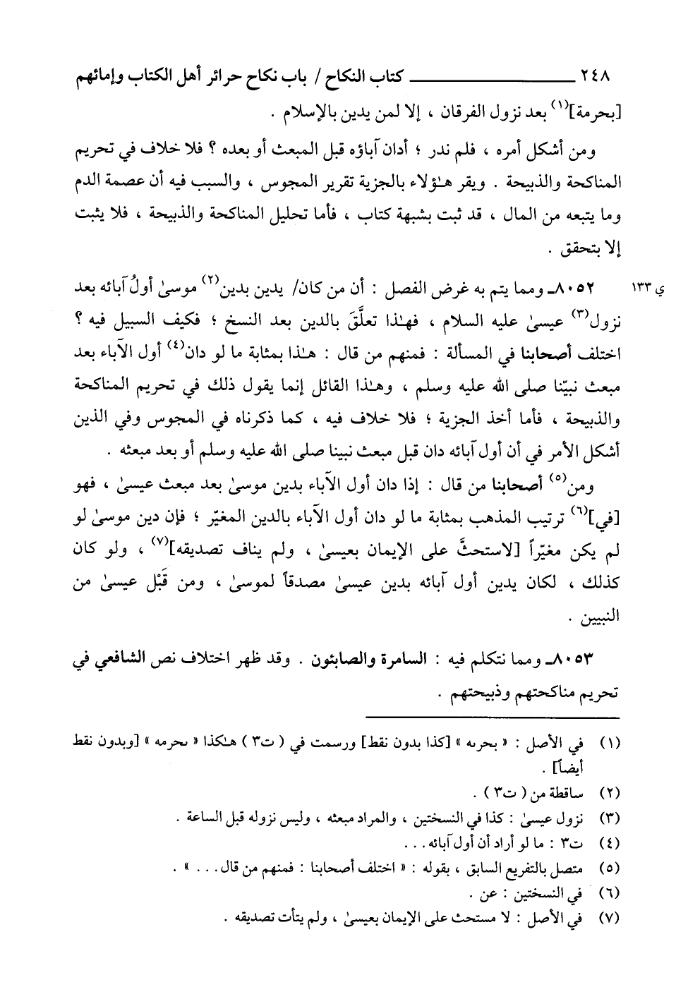 8053 - ومما نتكلم فيه: السامرة والصابئون. وقد ظهر اختلاف نص الشافعي في تحريم مناكحتهم وذبيحتهم.