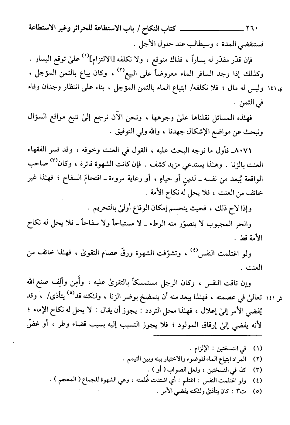 8071 - فأول ما نوجه البحث عليه، القول في العنت وخوفه، وقد فسر الفقهاء العنت بالزنا. وهذا يستدعي مزيد كشف. فإن كانت الشهوة فاترة، وكان (3) صاحب الواقعة يُبعد من نفسه -لدينٍ أو حياءٍ، أو رعاية مروءة- اقتحامَ السفاح؛ فهذا غير خائف من العنت، فلا يحل له نكاح الأمة.