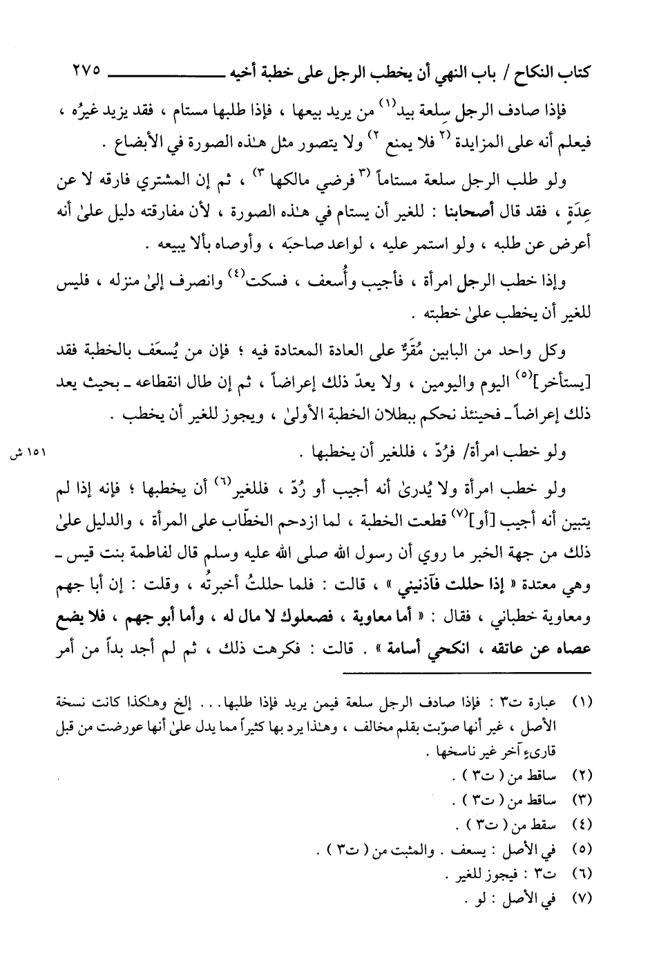 (1) عبارة ت 3: فإذا صادف الرجل سلعة فيمن يريد فإذا طلبها ... إلخ وهكذا كانت نسخة الأصل، غير أنها صوّبت بقلم مخالف، وهذا يرد بها كثيراً مما يدل على أنها عورضت من قبل قارىءٍ آخر غير ناسخها.