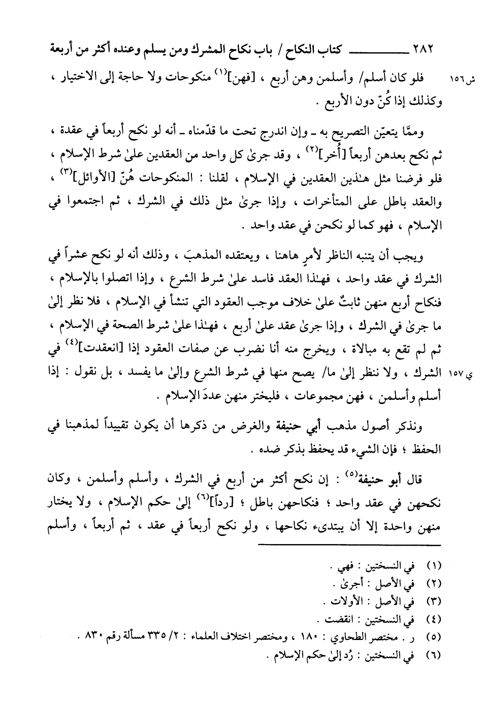 (5) ر. مختصر الطحاوي: 180، ومختصر اختلاف العلماء: 2/ 335 مسألة رقم 830.