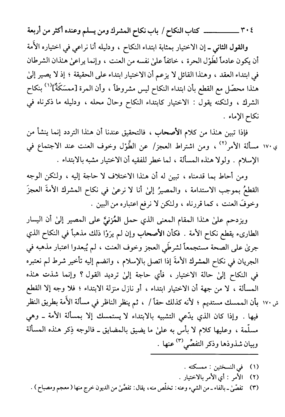 فإذا تبين هذا من كلام الأصحاب، فالتحقيق عندنا أن هذا التردد إنما ينشأ من مسألة الأمر (2)، ومن اشتراط العجز عن الطَّوْل وخوف العنت عند الاجتماع في الإسلام. ولولا هذه المسألة، لما خطر للفقيه أن الاختيار مشبه بالابتداء.