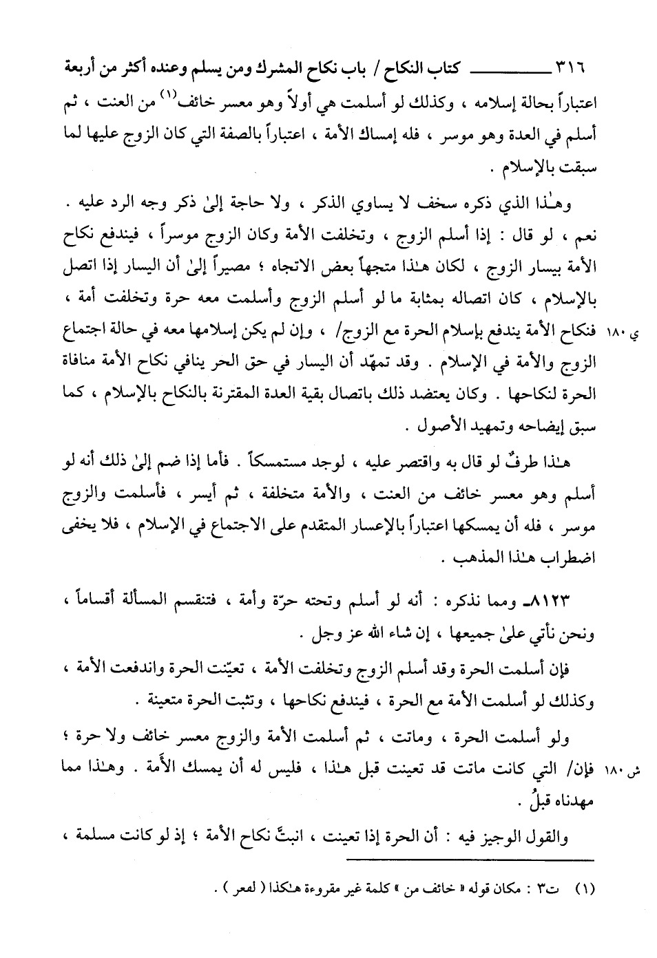 8123 - ومما نذكره: أنه لو أسلم وتحته حرّة وأمة، فتنقسم المسألة أقساماً، ونحن نأتي على جميعها، إن شاء الله عز وجل.