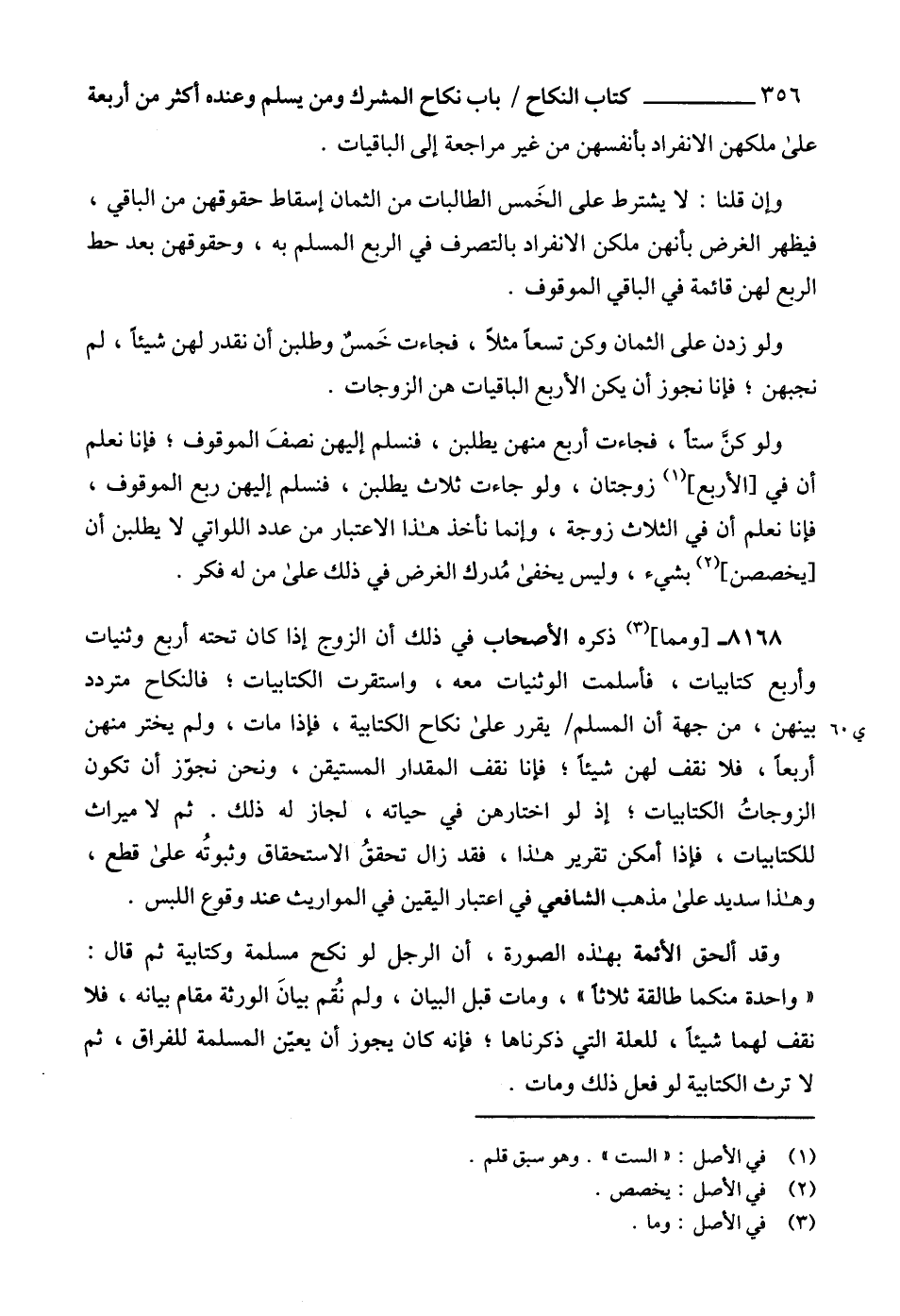 ولو كنَّ ستاً، فجاءت أربع منهن يطلبن، فنسلم إليهن نصفَ الموقوف؛ فإنا نعلم أن في [الأربع] (1) زوجتان، ولو جاءت ثلاث يطلبن، فنسلم إليهن ربع الموقوف، فإنا نعلم أن في الثلاث زوجة، وإنما نأخذ هذا الاعتبار من عدد اللواتي لا يطلبن أن [يخصصن] (2) بشيء، وليس يخفى مُدرك الغرض في ذلك على من له فكر.