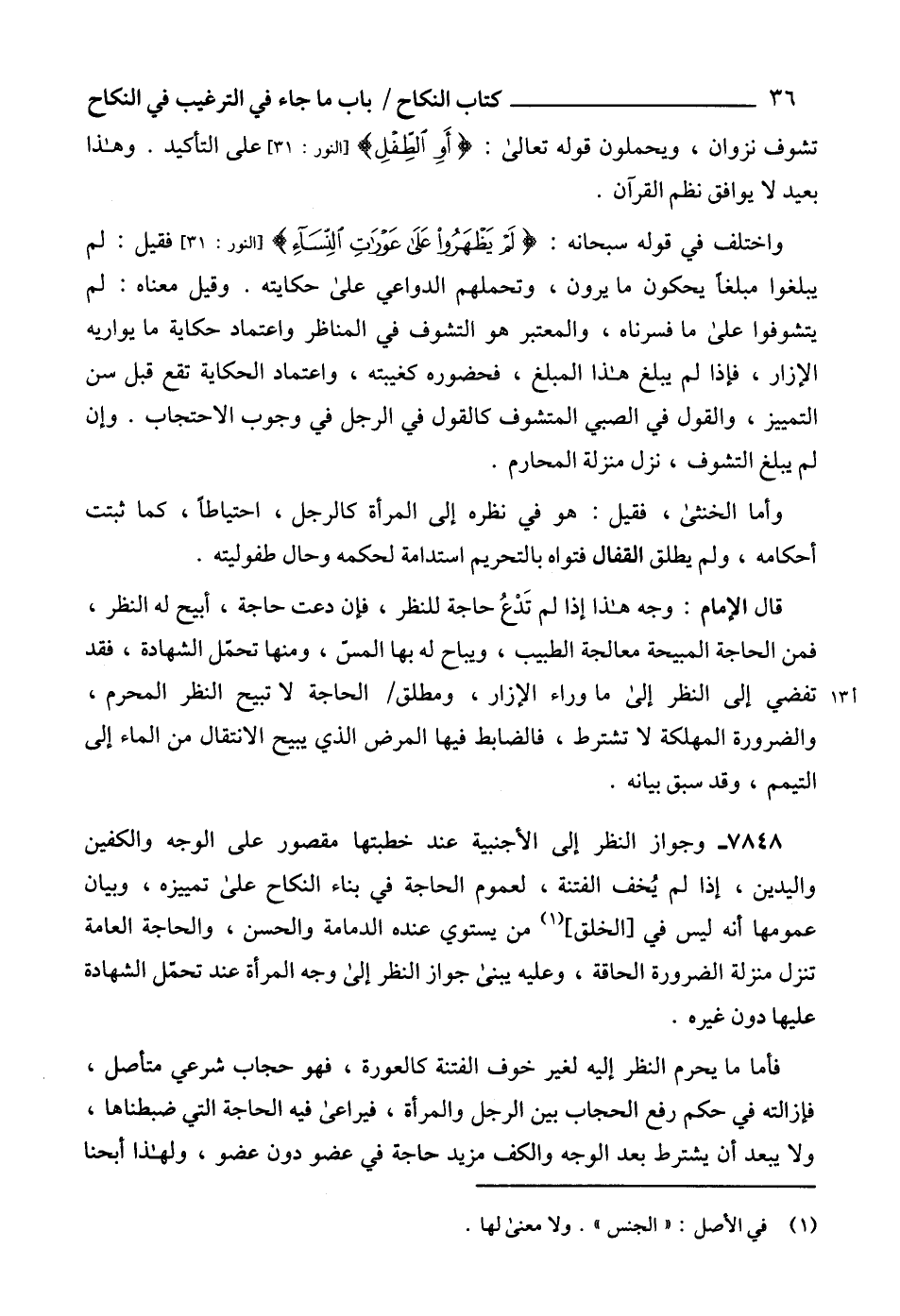 تشوف نزوان، ويحملون قوله تعالى: {أَوِ الطِّفْلِ} [النور: 31] على التأكيد. وهذا بعيد لا يوافق نظم القرآن.