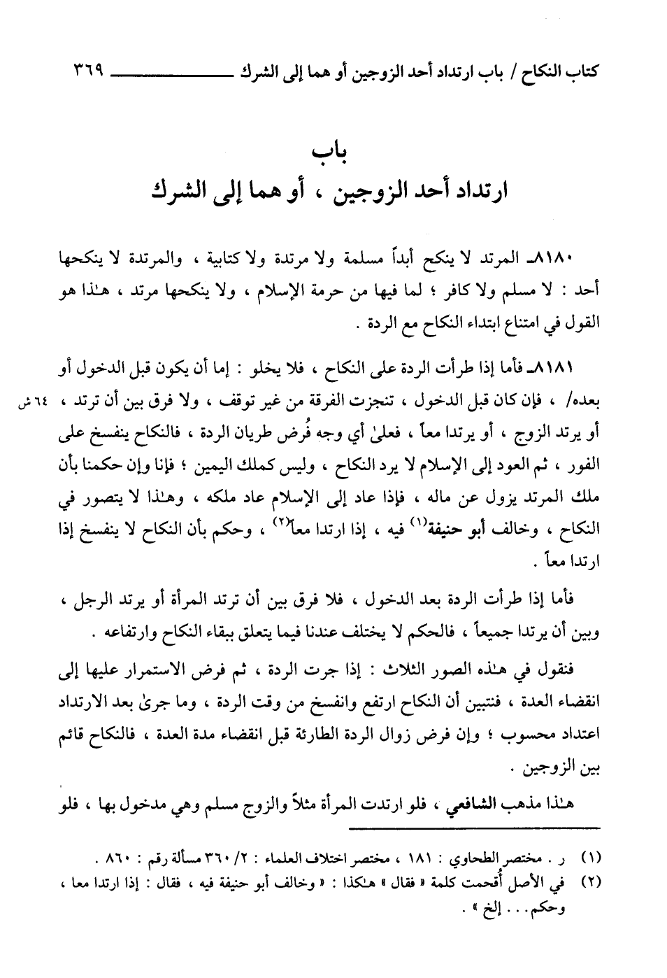 (1) ر. مختصر الطحاوي: 181، مختصر اختلاف العلماء: 2/ 360 مسألة رقم: 860.