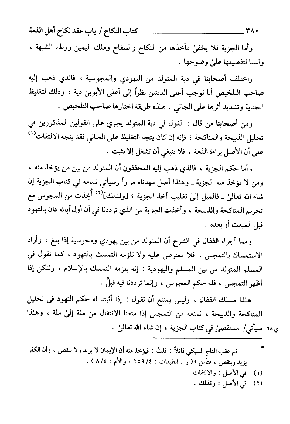 وأما حكم الجزية، فالذي ذهب إليه المحققون أن المتولد من بين من يؤخذ منه، ومن لا يؤخذ منه الجزية -وهذا أصل مهدناه مراراً وسيأتي تمامه في كتاب الجزية إن شاء الله تعالى- فالميل إلى تغليب أخذ الجزية؛ [ولذلك] (2) أُخِذت من المجوس مع تحريم المناكحة والذبيحة، وأخذت الجزية من الذي ترددنا في أن أول آبائه دان بالتهود قبل المبعث أو بعده.