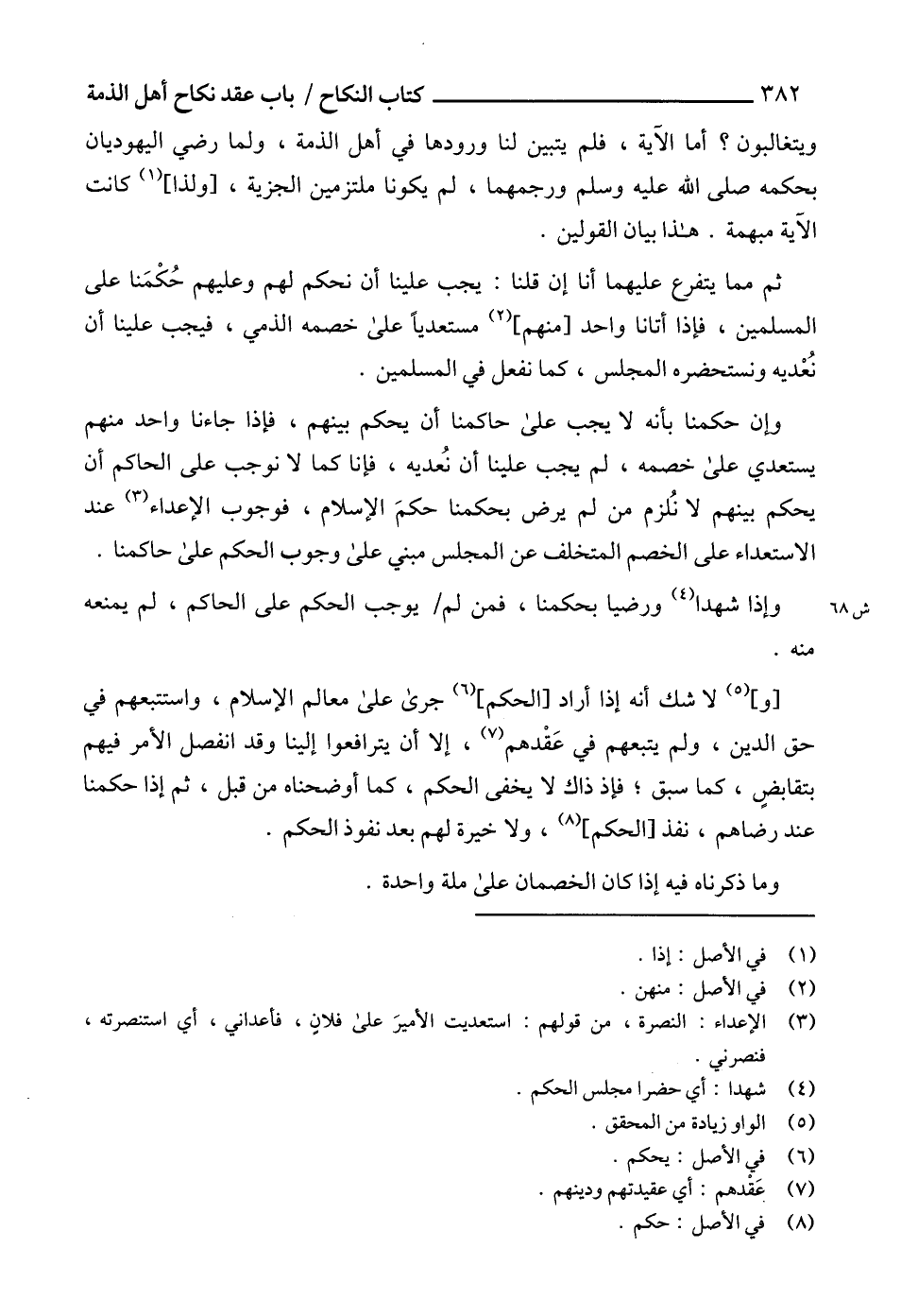 [و] (5) لا شك أنه إذا أراد [الحكم] (6) جرى على معالم الإسلام، واستتبعهم في حق الدين، ولم يتبعهم في عَقْدهم (7)، إلا أن يترافعوا إلينا وقد انفصل الأمر فيهم بتقابضٍ، كما سبق؛ فإذ ذاك لا يخفى الحكم، كما أوضحناه من قبل، ثم إذا حكمنا عند رضاهم، نفذ [الحكم] (8)، ولا خيرة لهم بعد نفوذ الحكم.
