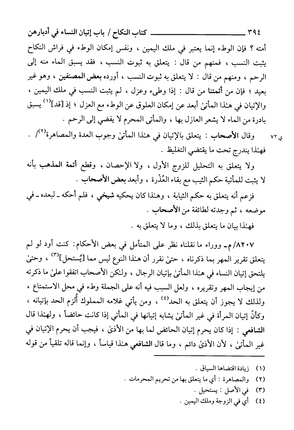 8207/م- ووراء ما نقلناه نظر على المتأمل في بعض الأحكام: كنت أود لو لم يتعلق تقرير المهر بما ذكرناه، حتى نقرر أن هذا النوع ليس مما [يُستحل] (3)، وحتى يلتحق إتيان النساء في هذا المأتى بإتيان الرجال، ولكن الأصحاب اتفقوا على ما ذكرته من إيجاب المهر وتقريره، ولعل السبب فيه أنه على الجملة وطء في محل الاستمتاع، ولذلك لا يجوز أن يتعلق به الحد (4)، ومن يأتي غلامه المملوك أُلزم الحد بإتيانه، وكأنّ إتيان المرأة في غير المأتى يشابه إتيانها في المأتي إذا كانت حائضاً، ولهذا قال الشافعي: إذا كان يحرم إتيان الحائض لما بها من الأذى، فيجب أن يحرم الإتيان في غير المأتى، لأن الأذى دائم، وما قال الشافعي هذا قياساً، وإنما قاله تلقياً من قوله