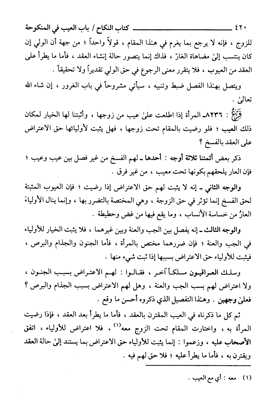 ولا اعتراض لهم بسب الجب والعنة، وهل لهم الاعتراض بسبب الجذام والبرص؟ فعلى وجهين. وهذا التفصيل الذي ذكروه أحسن ما وقع.