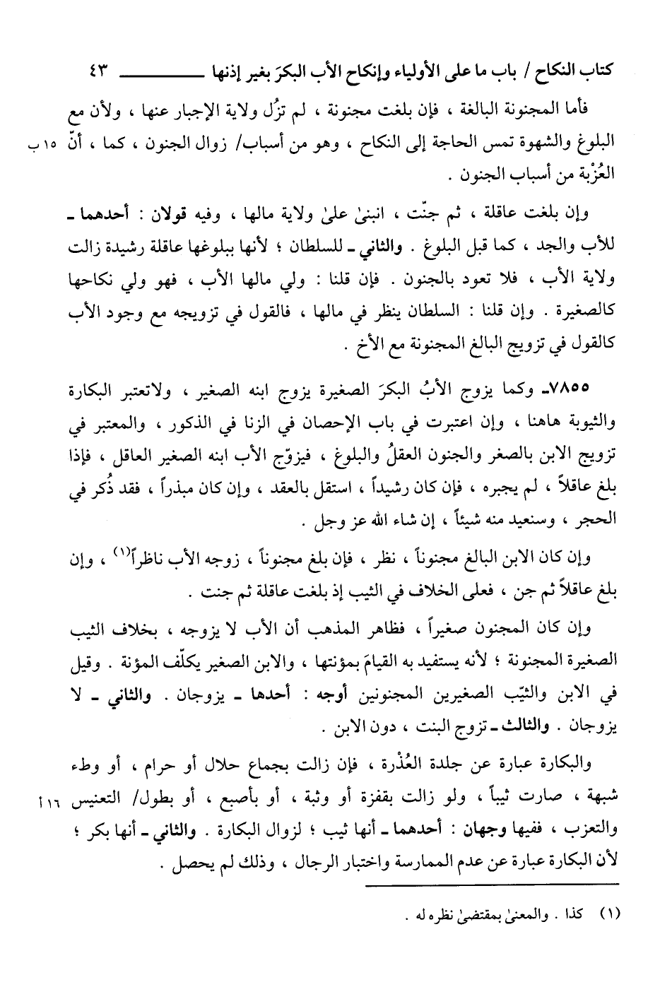 7855 - وكما يزوج الأبُ البكرَ الصغيرة يزوج ابنه الصغير، ولا تعتبر البكارة والثيوبة هاهنا، وإن اعتبرت في باب الإحصان في الزنا في الذكور، والمعتبر في تزويج الابن بالصغر والجنون العقلُ والبلوغ، فيزوّج الأب ابنه الصغير العاقل، فإذا بلغ عاقلاً، لم يجبره، فإن كان رشيداً، استقل بالعقد، وإن كان مبذراً، فقد ذُكر في الحجر، وسنعيد منه شيئاً، إن شاء الله عز وجل.