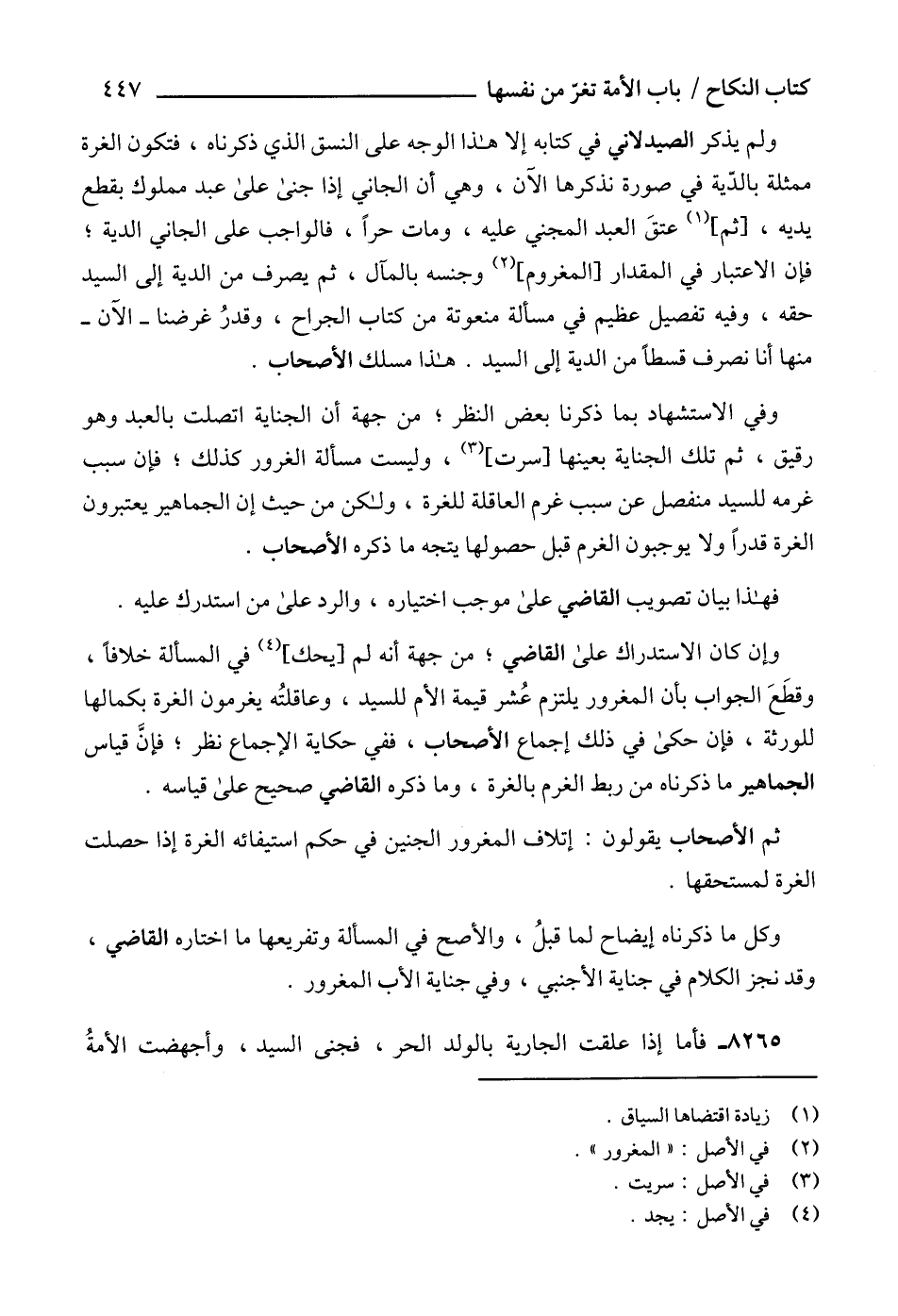 وإن كان الاستدراك على القاضي؛ من جهة أنه لم [يحك] (4) في المسألة خلافاً، وقطَعَ الجواب بأن المغرور يلتزم عُشر قيمة الأم للسيد، وعاقلتُه يغرمون الغرة بكمالها للورثة، فإن حكى في ذلك إجماع الأصحاب، ففي حكاية الإجماع نظر؛ فإنَّ قياس الجماهير ما ذكرناه من ربط الغرم بالغرة، وما ذكره القاضي صحيح على قياسه.