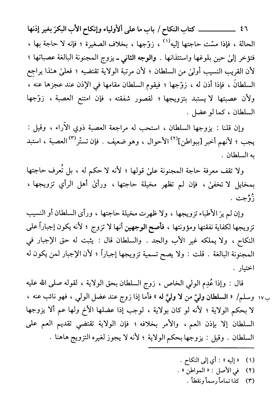 الحالة، فإذا مسّت حاجتها إليه (1)، زوّجها، بخلاف الصغيرة؛ فإنه لا حاجة بها، فتؤخر إلى حين بلوغها واستئذانها. والوجه الثاني - يزوج المجنونة البالغة عصباتها؛ لأن القريب النسيب أولى من السلطان؛ لأن مرتبة الولاية تقتضيه؛ فعلى هذا يراجِع السلطانَ، فإذا أذن له، زوّجها؛ فيقوم السلطان مقامها في الإذن عند عجزها عنه، ولأن عصبتها لا يستبد بتزويجها؛ لقصور شفقته، فإن امتنع العصبة، زوّجها السلطان، كما لو عضل.
