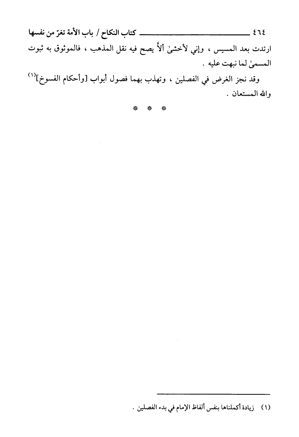 (1) زيادة أكملناها بنفس ألفاظ الإمام في بدء الفصلين.