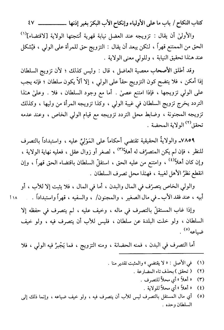 7859 - والولايةُ الحقيقية تقتضي أحكاماً على المَوْلِيِّ عليه، واستبداداً بالتصرف للنظر، فإن لم يكن المتصرَّف له أهلاً (3)، لصغر أو زوال عقل، فعليه نهاية الولاية، وإن كان أهلاً (4)، وامتنع من عليه الحق، استقلّ السلطان باقتضاء الحق قهراً، وإن انقطع نظرُ الأهل لغيبة، فهذا محل تصرف السلطان.