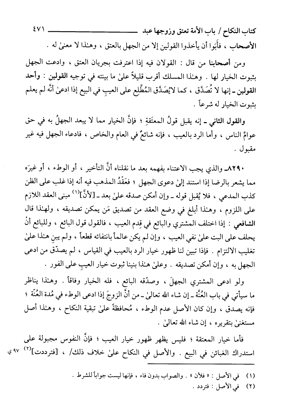 والقول الثاني - إنه يقبل قولُ المعتَقةِ؛ فإنَّ الخيار مما لا يبعد الجهلُ به في حق عوامِّ الناس، وأما الرد بالعيب، فإنه شائعٌ في العام والخاص، فادعاء الجهل فيه غير مقبول.