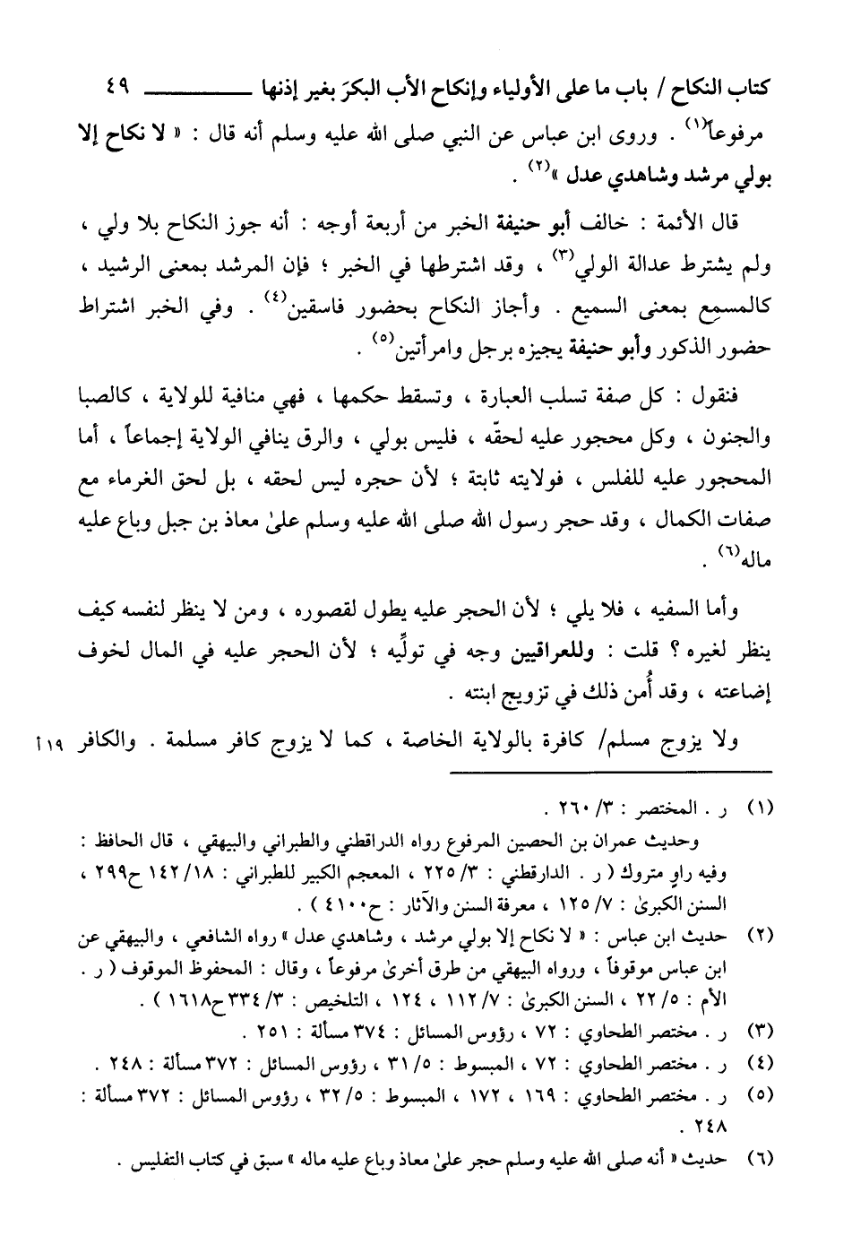 (5) ر. مختصر الطحاوي: 169، 172، المبسوط: 5/ 32، رؤوس المسائل: 372 مسألة: 248.